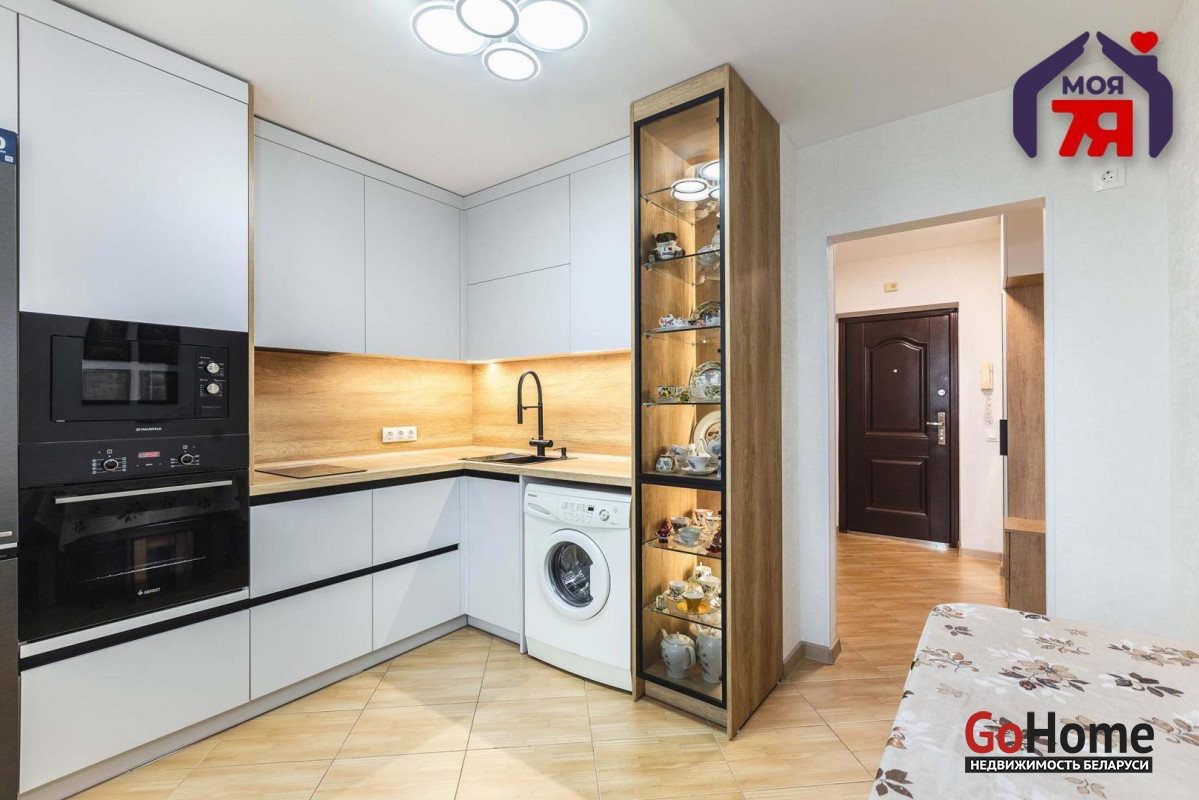 ️ Однокомнатная квартира 39,8 кв.м в спокойном районе Минска. Качественный ремонт, просторная лоджия, дом 2008 года. Рядом метро «Ковальская Слобода» и «Аэродромная», торговые центры, школы, зелёная зона и велодорожка вдоль Свислочи.