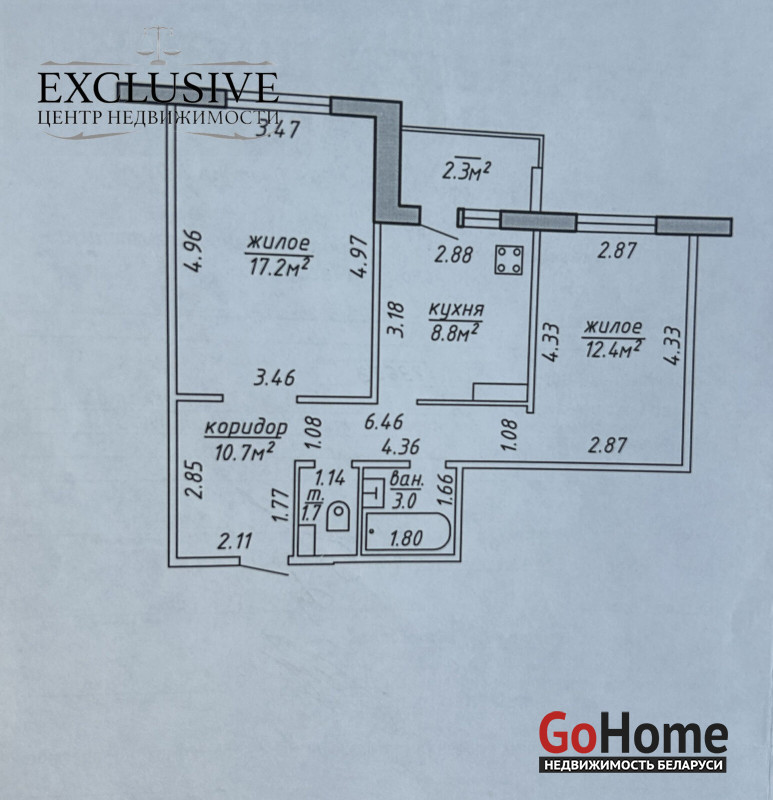 Продается двухкомнатная квартира улучшенной планировки в г. Новополоцке. Квартира светлая, сухая, не угловая, находится на комфортном третьем этаже. Комнаты изолированные, санузел раздельный, выход с кухни на балкон. Общая площадь 53,8 м.кв., кухня 8,8 м.кв. Сделан косметический ремонт ( состояние по фото). Окна ПВХ, на балконе установлена алюминиевая рама, полы линолеум, качественная входная дверь. Новым собственникам остается вместительный шкаф купе и кухня. Развитая инфраструктура: магазин, остановка общественного транспорта. Доброжелательные соседи. Возможен способ оплаты по средствам кредита банка, материнского капитала, зачет Вашей квартиры, с учетом предварительного задатка и последующий продажи Вашей квартиры. Звоните, ответим на все интересующие Вас вопросы.