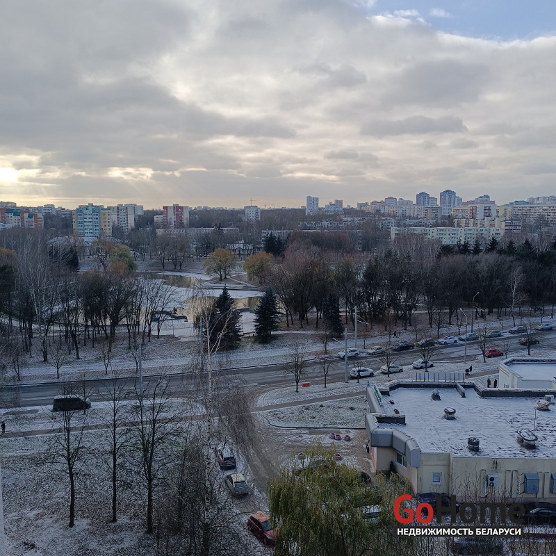 Красивый вид из лоджии на водохранилище, где плавают утки и лебеди, а другие три окна выходят на противоположную сторону во двор.