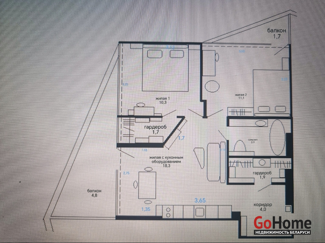 Просторная евротрёшка в Минск мире в 7 минутах от метро 2024 года с техникой и мебелью по ул. Алферова, 5.