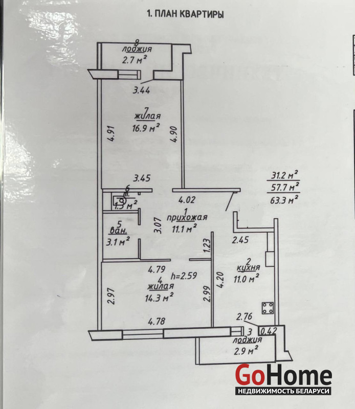 •общая площадь-63.3