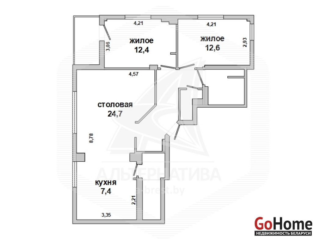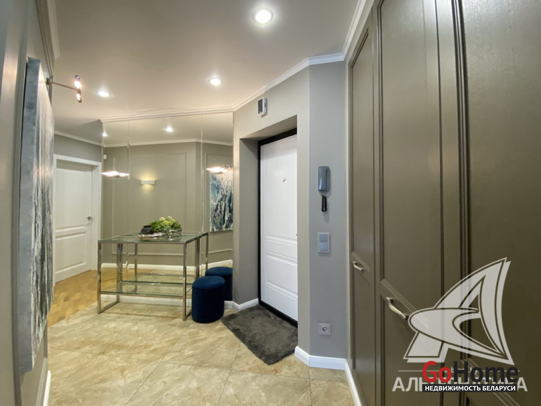 Трехкомнатная современная квартира на седьмом этаже 16-этажного блочного кооперативного дома 2017 года постройки в центре г. Бреста (ул. Фомина). Установлены стеклопакеты нового образца, подоконники во всех комнатах — из искусственного камня. Расположение окон квартиры на две стороны дома — это много света утром и мягкий закат вечером. Входная дверь - металлическая ProfilDoors с шумоизоляцией и антивандальным покрытием; межкомнатные - из массива ольхи. Общая площадь 79,5 кв.м, жилая 49,7 кв.м. Улучшенная зарегистрированная планировка отличается удобством: гостиная-столовая 24,7 кв.м. объединена с кухней, две спальни с балконом, гостиная-столовая 24,7 кв.м. объединена с кухней, два санузла с ванной и душевой. Балкон застеклен (заменены стеклопакеты) и оборудован системой хранения.