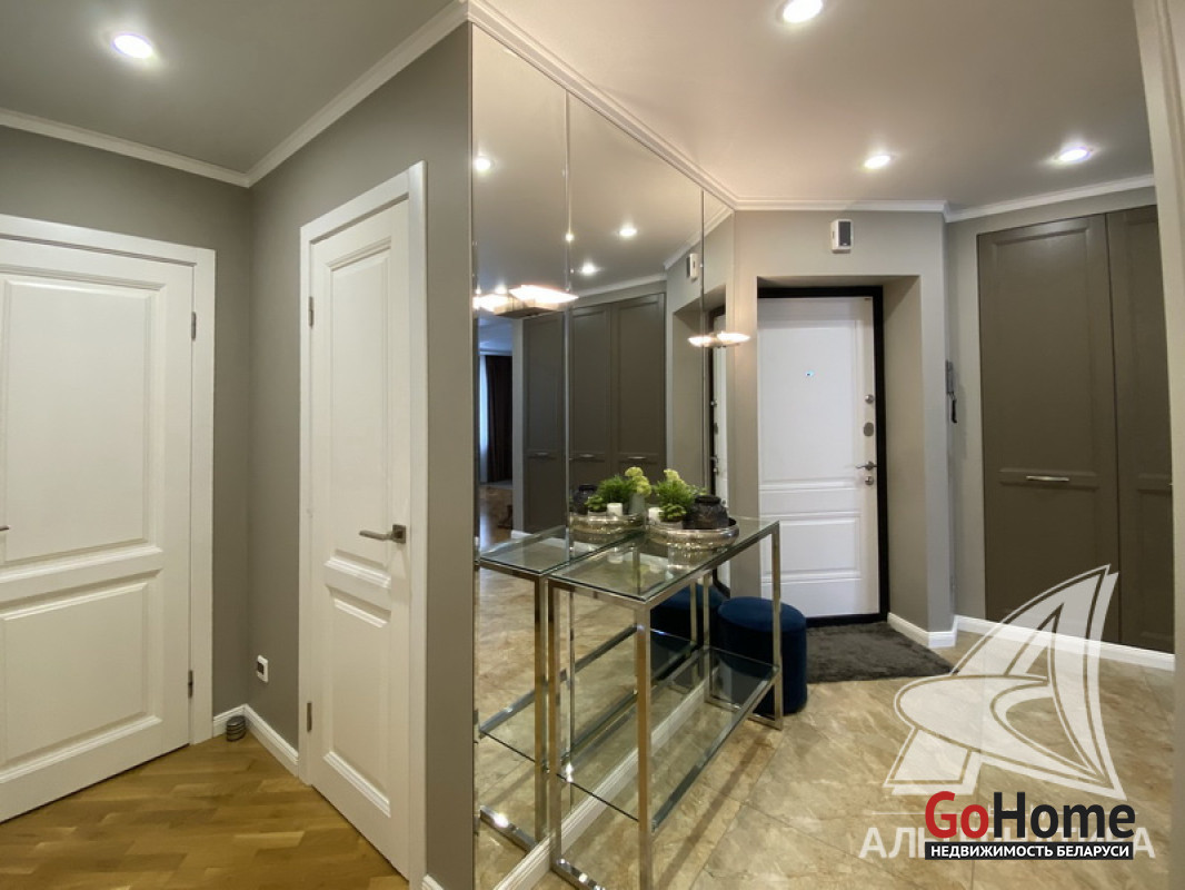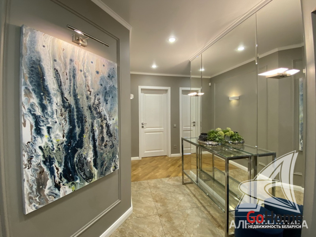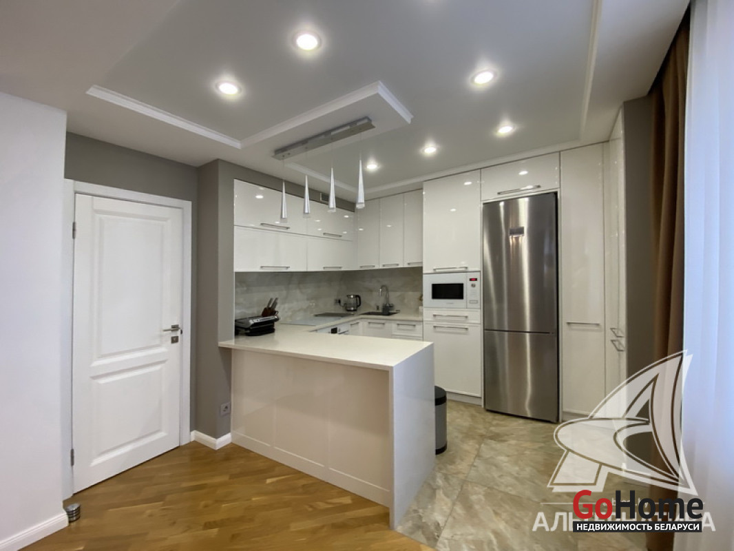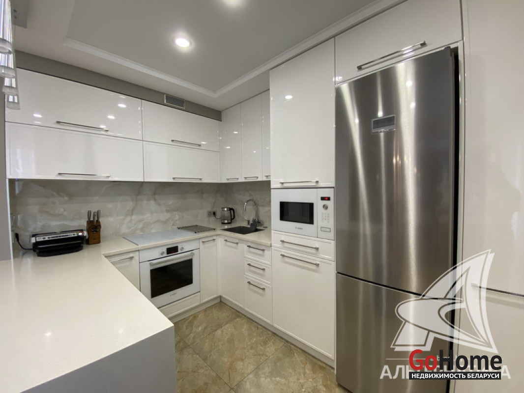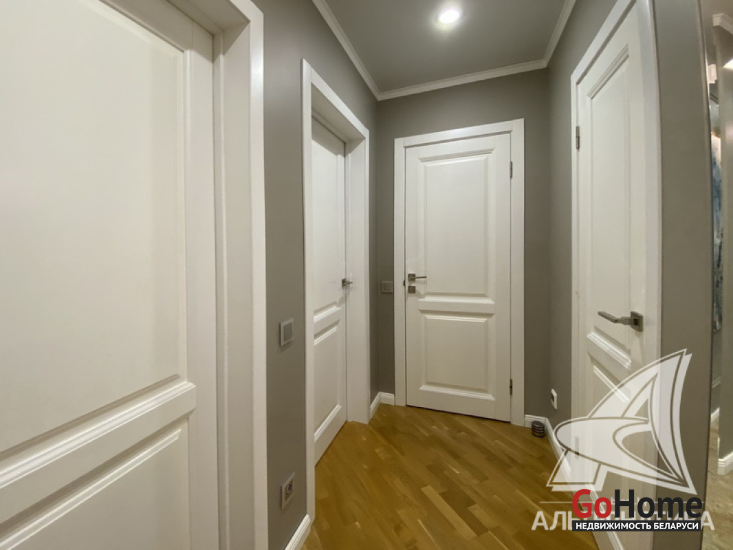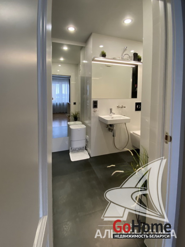 3-комнатная квартира, г. Брест, ул. Фомина, 2017 г.п., 7 / 16 блок, 79,5 / 76,7 / 49,7 / 7,4, два совмещенных санузла, балкон застеклен, стеклопакеты, межкомнатные двери - массив (ольха), входная дверь металлическая (ProfilDoors с шумоподавление), комбинированные потолки - натяжной и снежка (в спальне, оштукатурены и выравнены), полы - паркетная доска (дуб) и плитка (широкоформатный керамогранит), есть подогрев пола (в коридоре), стены оклеены обоями под покраску (метровые, рассчитаны на четырехкратное покрытие, немецкое качество), в санузле современная плитка, заменена сантехника, заменены сантехнические трубы, инсталляция, установлен бойлер, есть подогрев пола, проведена новая электропроводка, установлены фильтры очистки воды, новый электросчетчик, установлены новые радиаторы, домофон. Кухонный гарнитур, варочная поверхность (Bosch), духовой шкаф (Bosch), микроволновая печь (Bosch), встроенный шкаф (массив дуба, в коридоре), шторы Blackout, лампы, люстры, стол (в детской), шкаф (в спальне), система хранения (на балконе), шкафы (в санузлах). Остальная мебель по договоренности. Подоконники и столешница в кухне из искусственного камня. Квартира с хорошим ремонтом. Сигнализация. Квартира расположена на две стороны. Чистый подъезд. Пассажирский и грузовой лифты. Дом оборудован пандусом. Во дворе игровая детская площадка, парковка для автомобилей. Дом расположен в глубине двора. Лот - 260207