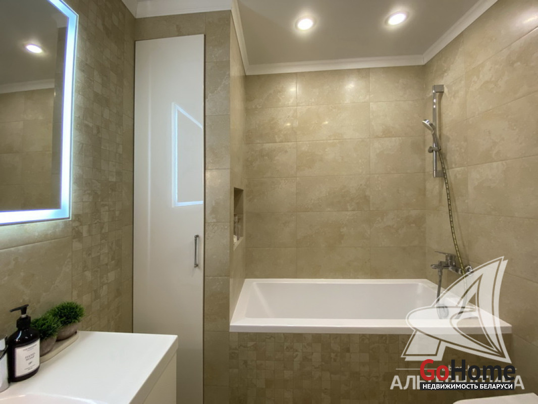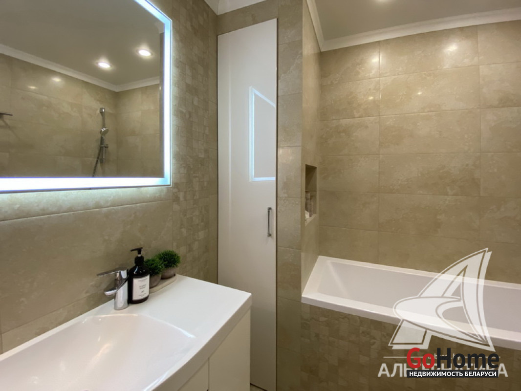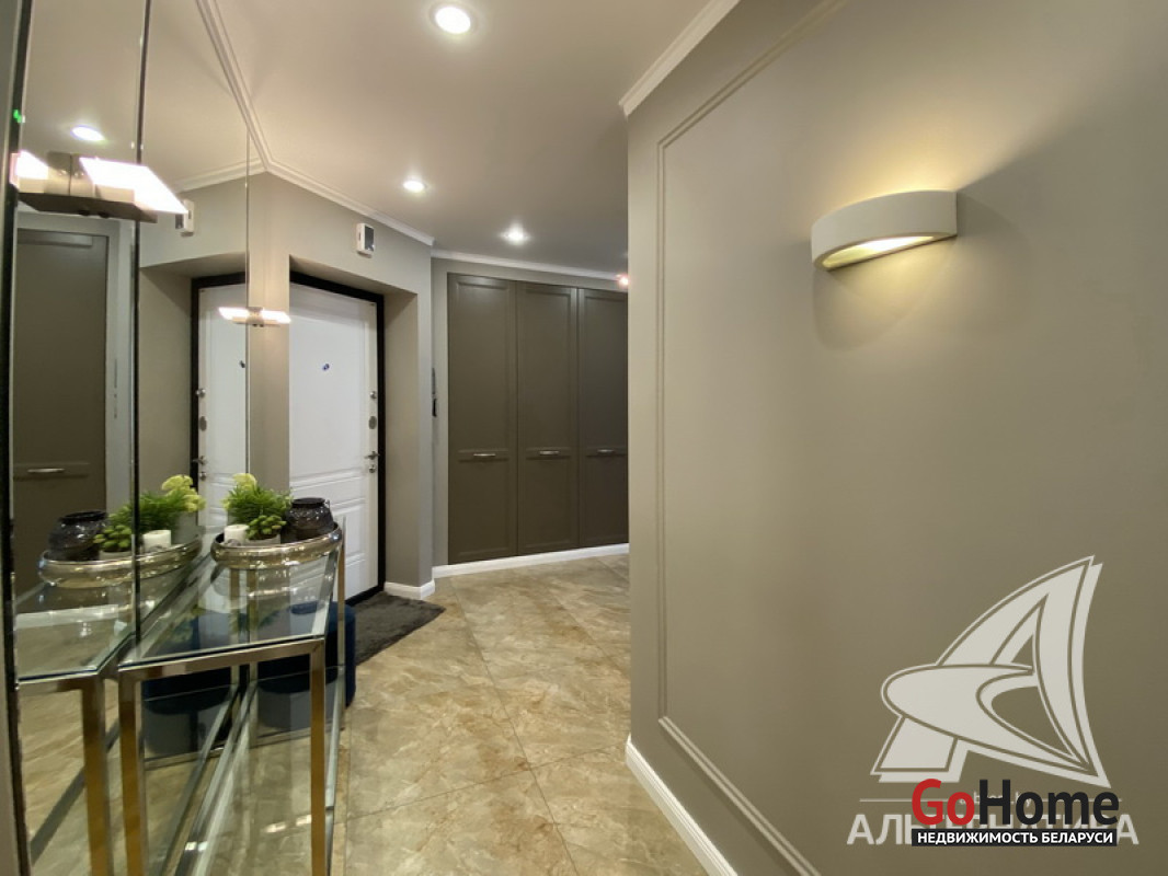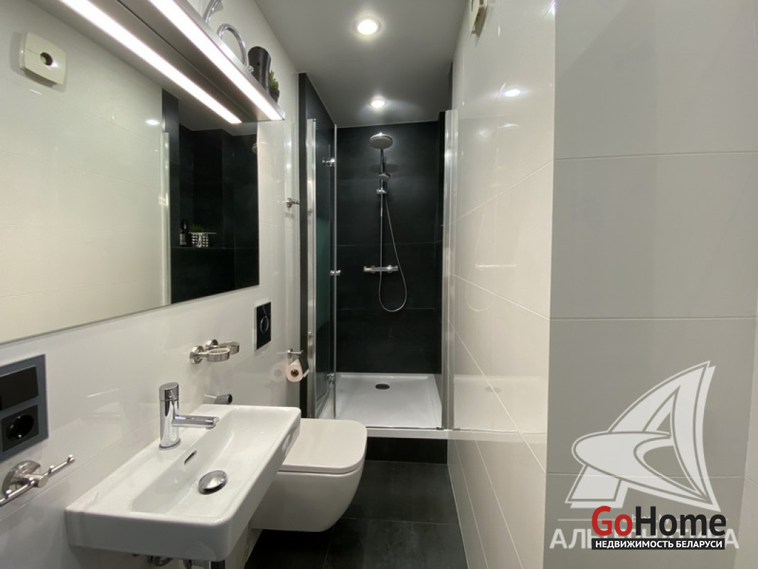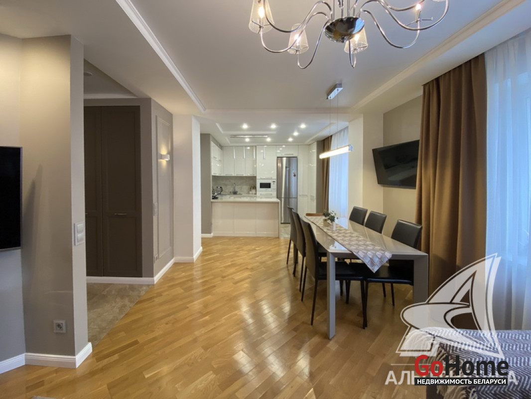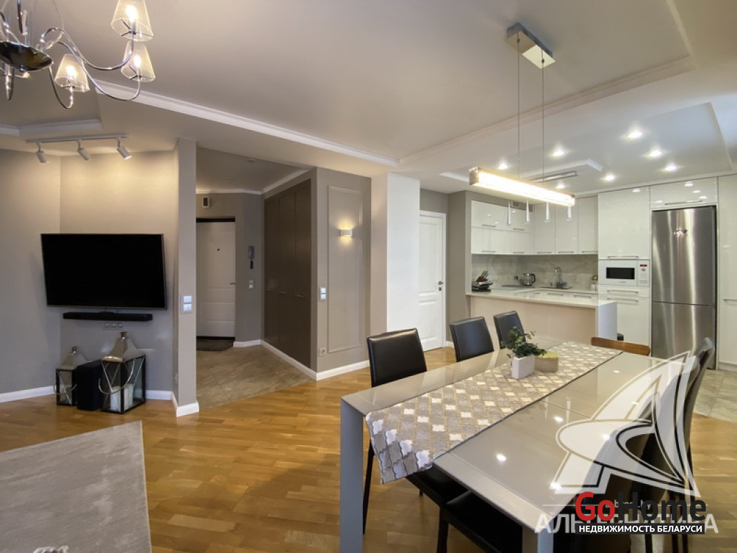 3-комнатная квартира, г. Брест, ул. Фомина, 2017 г.п., 7 / 16 блок, 79,5 / 76,7 / 49,7 / 7,4, два совмещенных санузла, балкон застеклен, стеклопакеты, межкомнатные двери - массив (ольха), входная дверь металлическая (ProfilDoors с шумоподавление), комбинированные потолки - натяжной и снежка (в спальне, оштукатурены и выравнены), полы - паркетная доска (дуб) и плитка (широкоформатный керамогранит), есть подогрев пола (в коридоре), стены оклеены обоями под покраску (метровые, рассчитаны на четырехкратное покрытие, немецкое качество), в санузле современная плитка, заменена сантехника, заменены сантехнические трубы, инсталляция, установлен бойлер, есть подогрев пола, проведена новая электропроводка, установлены фильтры очистки воды, новый электросчетчик, установлены новые радиаторы, домофон. Кухонный гарнитур, варочная поверхность (Bosch), духовой шкаф (Bosch), микроволновая печь (Bosch), встроенный шкаф (массив дуба, в коридоре), шторы Blackout, лампы, люстры, стол (в детской), шкаф (в спальне), система хранения (на балконе), шкафы (в санузлах). Остальная мебель по договоренности. Подоконники и столешница в кухне из искусственного камня. Квартира с хорошим ремонтом. Сигнализация. Квартира расположена на две стороны. Чистый подъезд. Пассажирский и грузовой лифты. Дом оборудован пандусом. Во дворе игровая детская площадка, парковка для автомобилей. Дом расположен в глубине двора. Лот - 260207