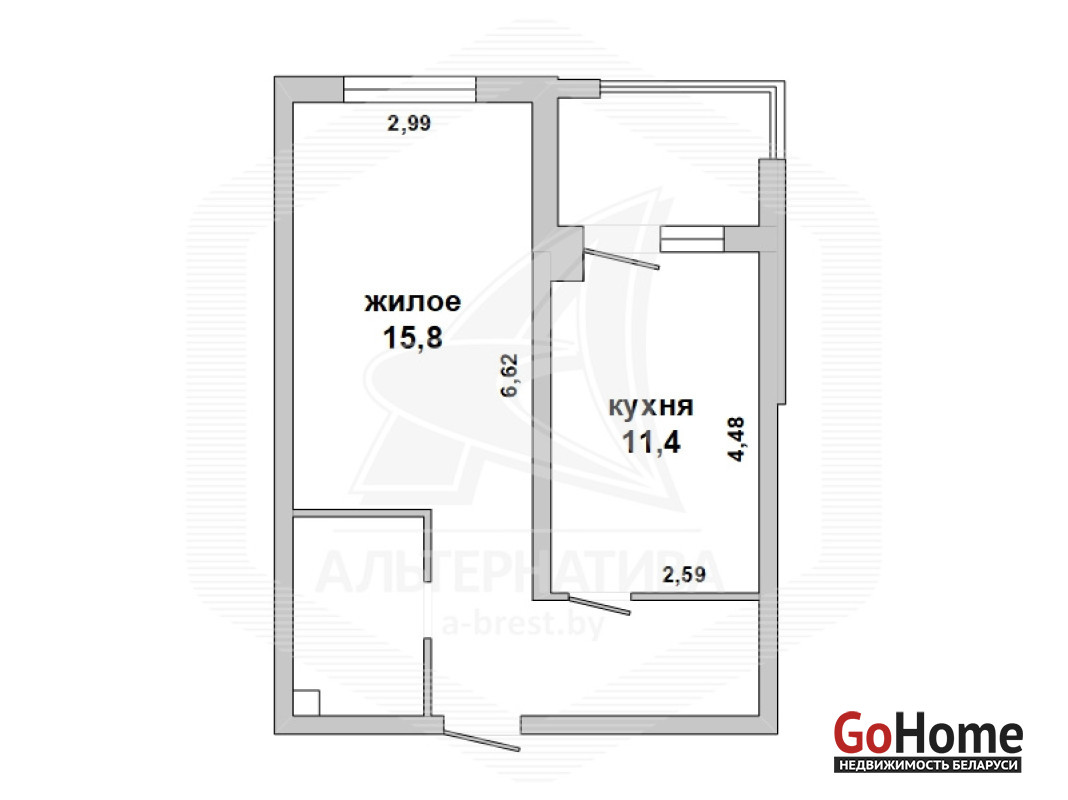 1-комнатная квартира, г. Брест, пр-т Республики, 2020 г.п., 2 / 3 кирпич, 41,6 / 38,4 / 15,8 / 11,4, санузел совмещенный, лоджия застеклена, стеклопакеты, окна во французском стиле (на лоджии, в комнате), входная дверь металлическая, полы - ламинат, автономный газовый котел, домофон. В квартире частично произведен ремонт. Лот - 260205