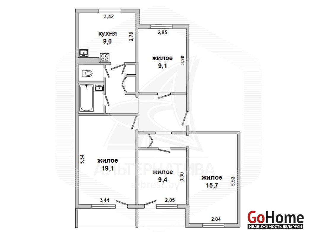 4-комнатная квартира, г. Береза, ул. Игоря Тышкевича, 1990 г.п., 5 / 5 панель, 83,4 / 79,6 / 53,3 / 9,0, санузел раздельный, две лоджии застеклены, стеклопакеты, деревянные межкомнатные двери, потолки (2,59 м) - снежка, полы - линолеум и ламинат (в детской), стены оклеены обоями, в санузле на стенах сайдинг, чугунная ванна, телефон, домофон. Вся мебель и техника по договоренности. Квартира с хорошим ремонтом. Квартира расположена на две стороны. Все окна выходят во двор. Чистый подъезд. Система видеонаблюдения. Во дворе игровая детская площадка, парковка для автомобилей. Дом расположен в глубине двора. Лот - 260198