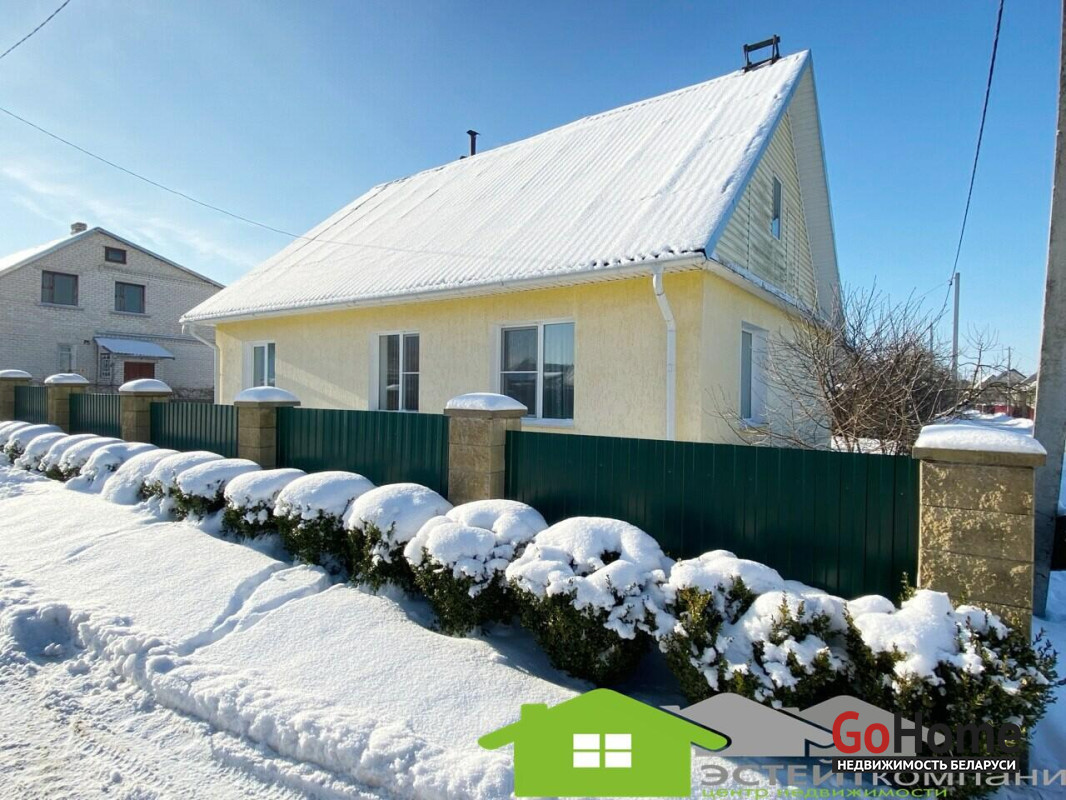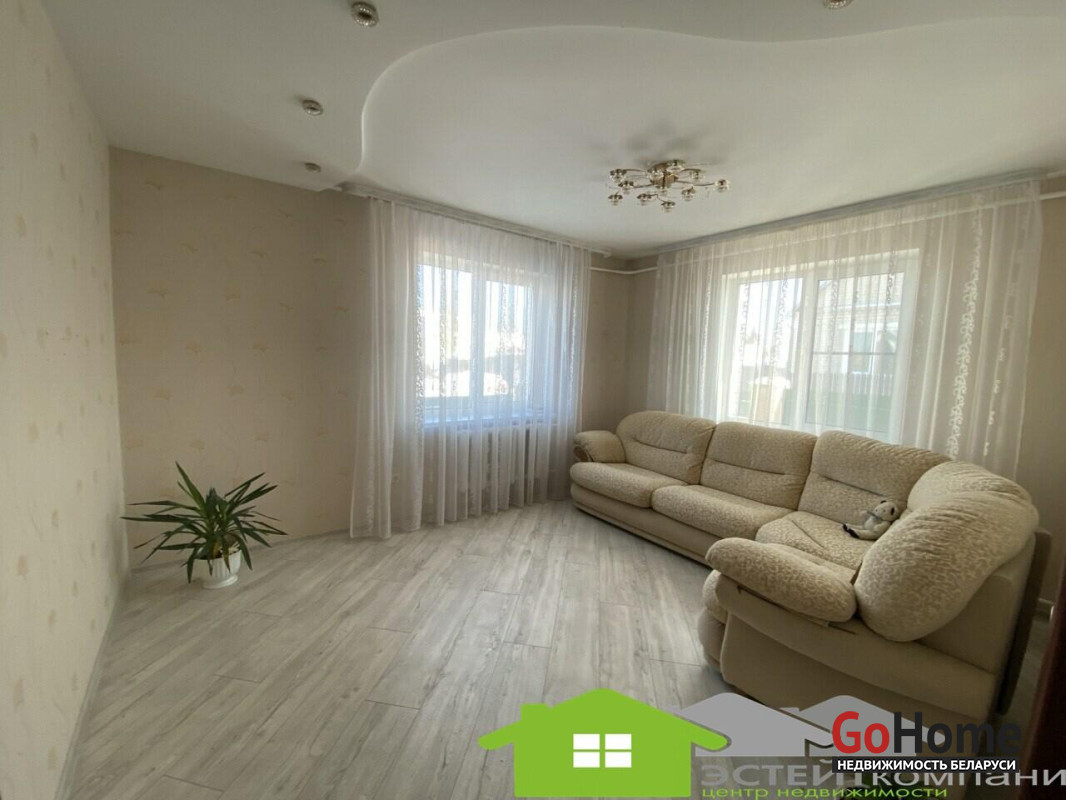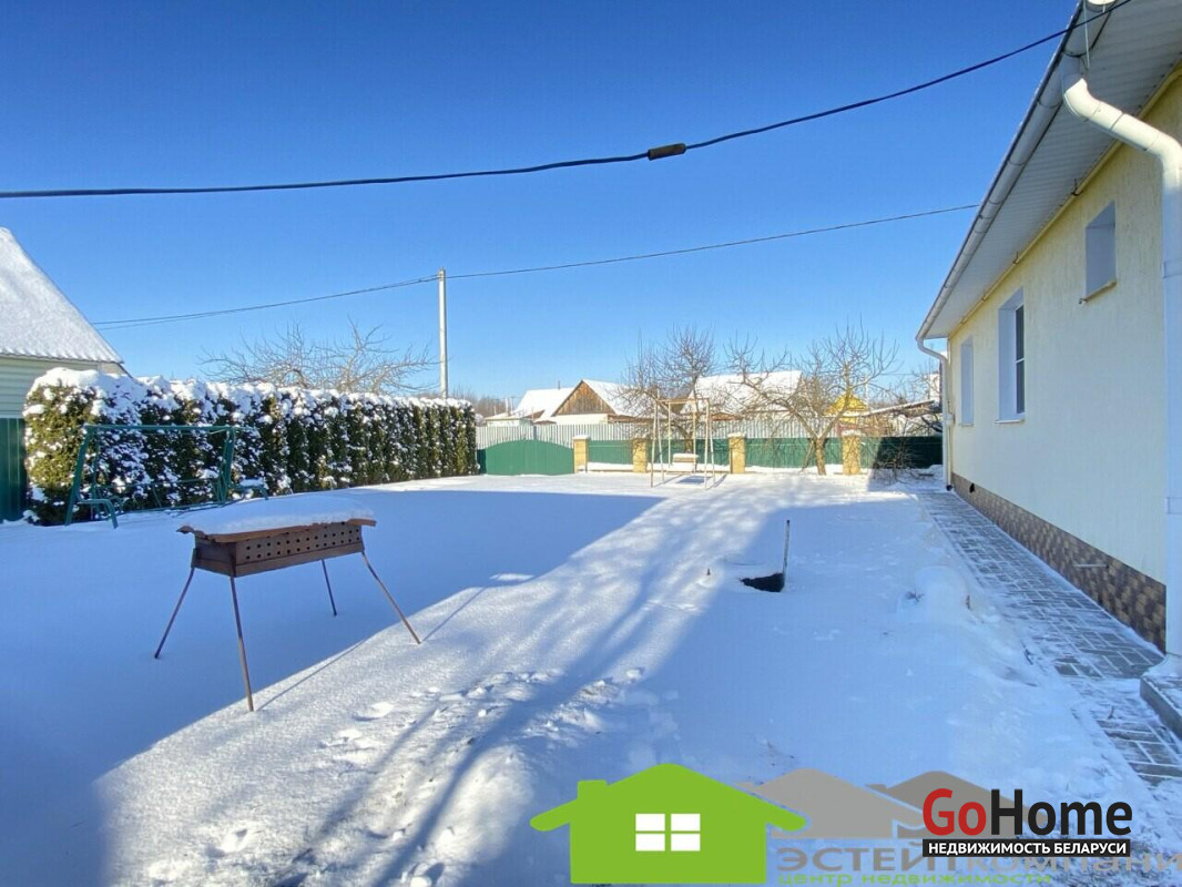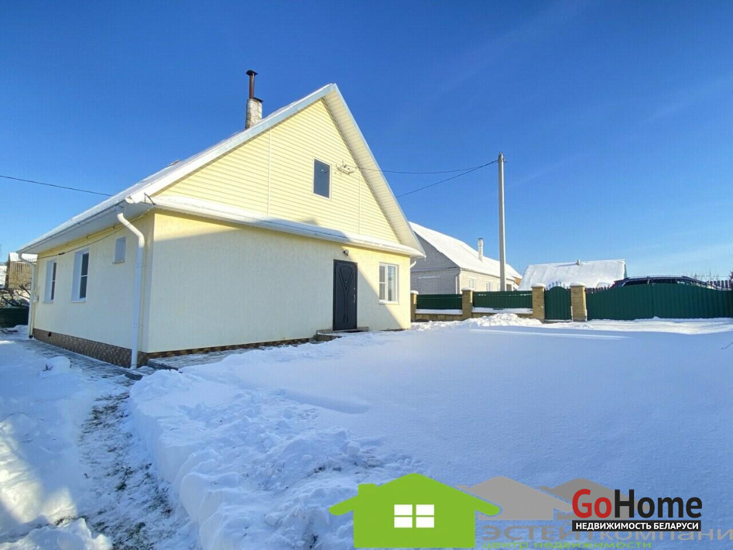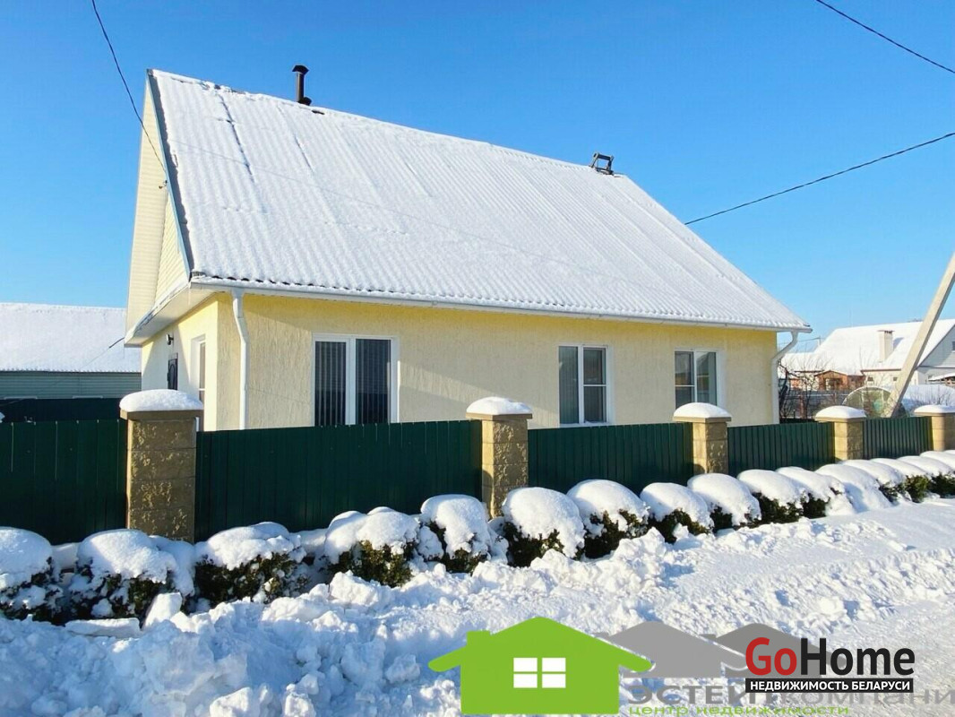 Дом одноэтажный из блока, кровля- шифер. В доме 4 комнаты. Общая наружная площадь 105 м2, жилая 49,4м2, кухня 10,4м2. Окна- ПВХ. Полы в комнатах и коридоре- ламинат; на кухне-линолеум, в санузлах и прихожей- керамическая плитка (с подогревом). Потолки из гипсокартона с декоративными элементами.