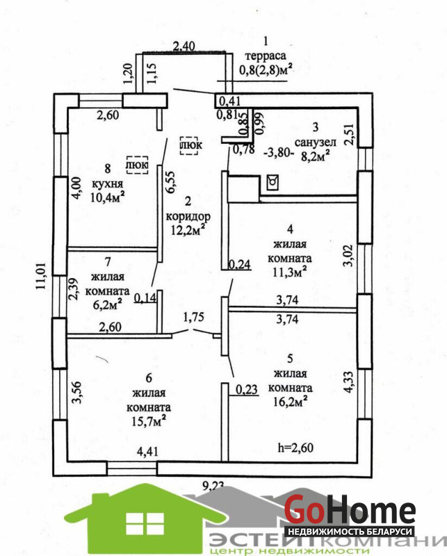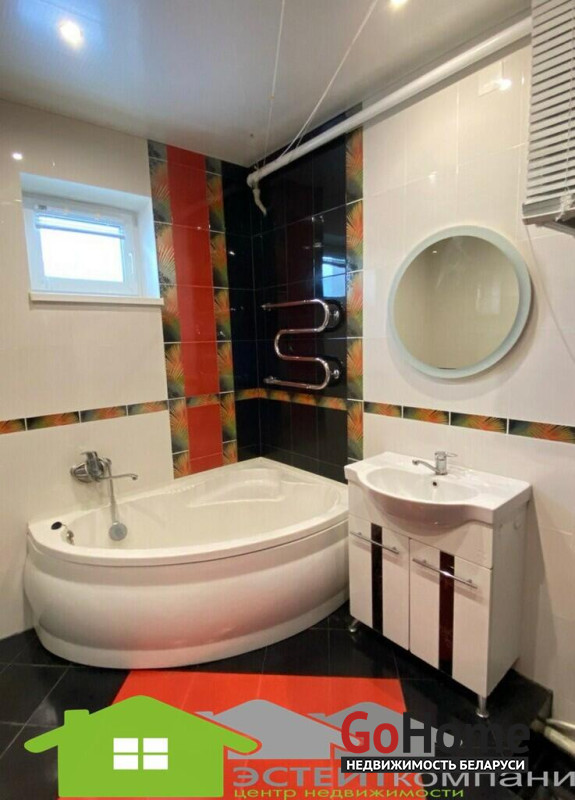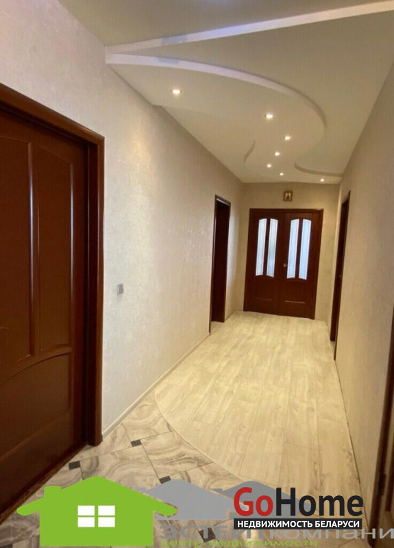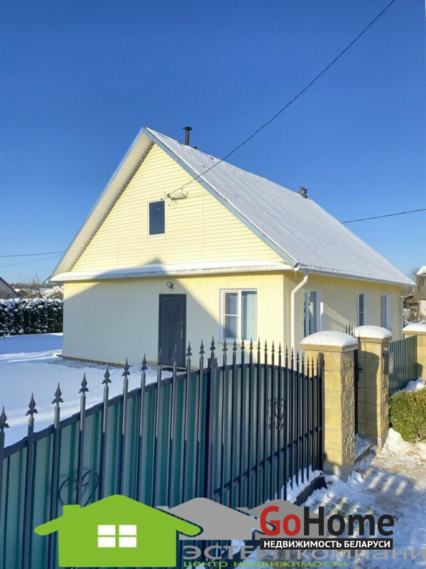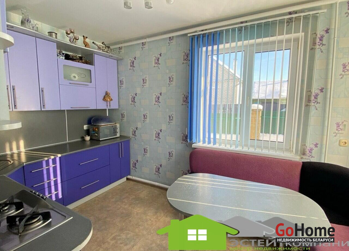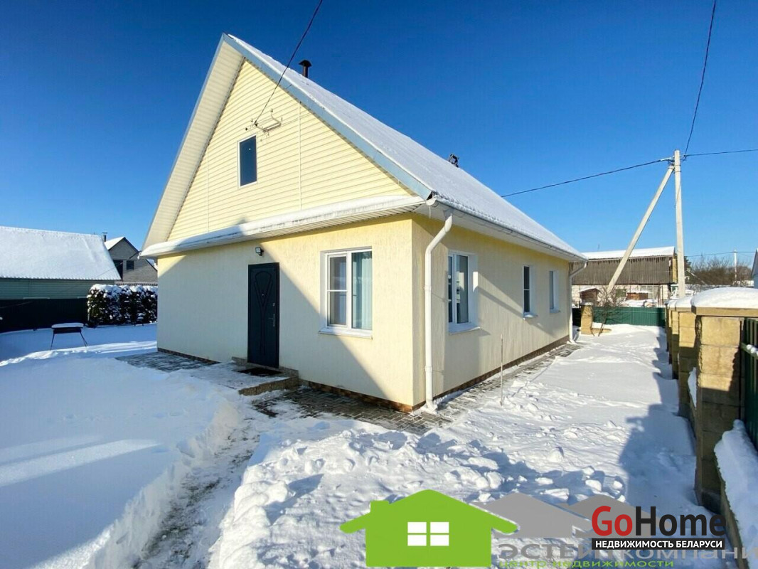 Дом одноэтажный из блока, кровля- шифер. В доме 4 комнаты. Общая наружная площадь 105 м2, жилая 49,4м2, кухня 10,4м2. Окна- ПВХ. Полы в комнатах и коридоре- ламинат; на кухне-линолеум, в санузлах и прихожей- керамическая плитка (с подогревом). Потолки из гипсокартона с декоративными элементами.
