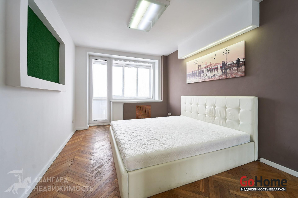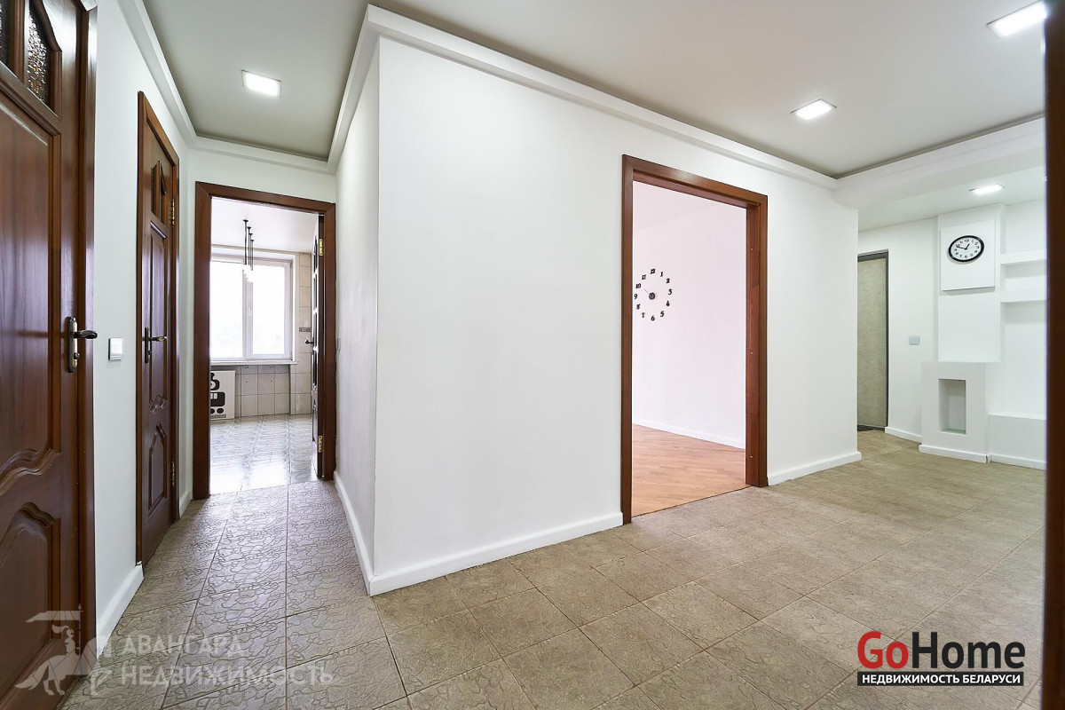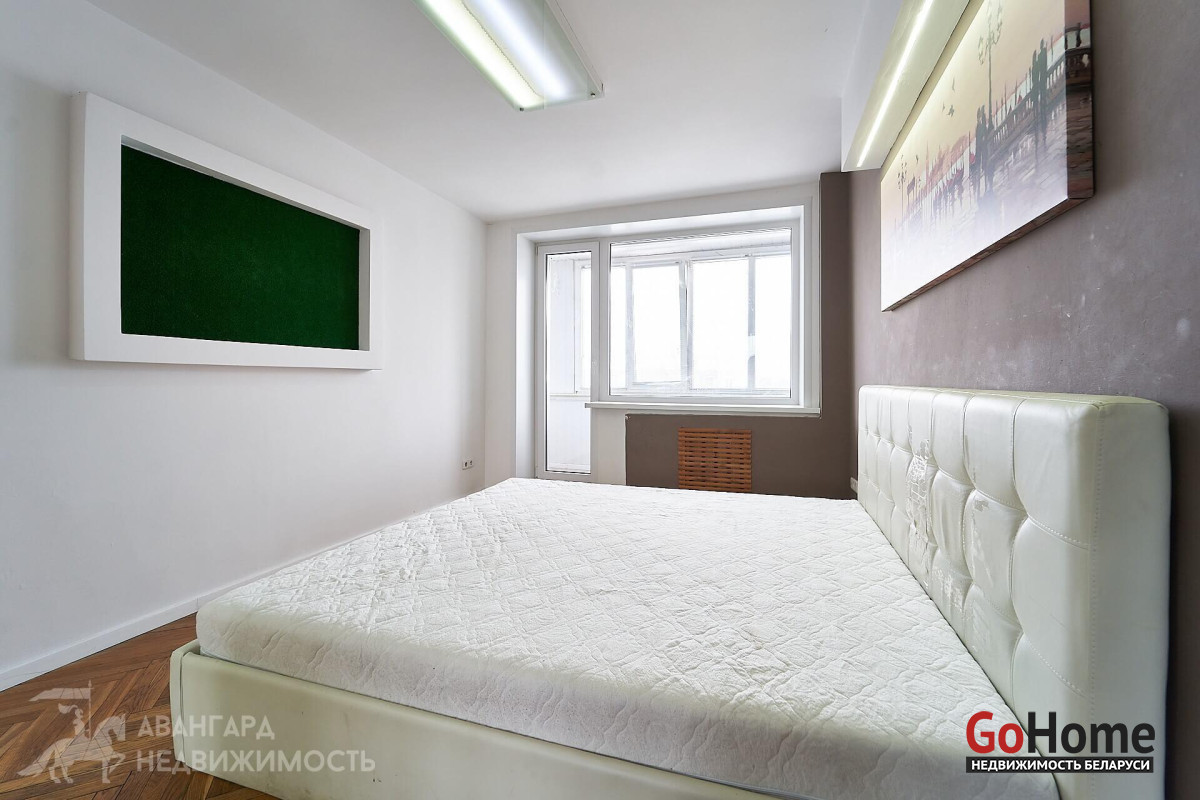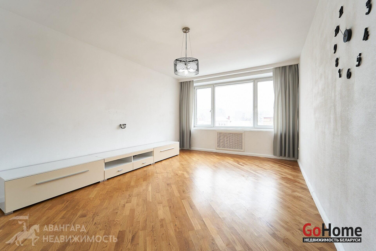 Жилые комнаты правильной формы, что позволит вам с легкостью расставить мебель. Комната площадью 18,8 м2 и кухня выходят на проспект Независимости. Две комнаты поменьше (спальня) выходят окнами во двор.
