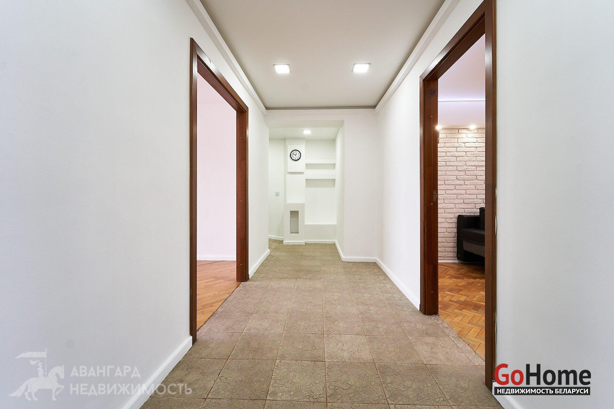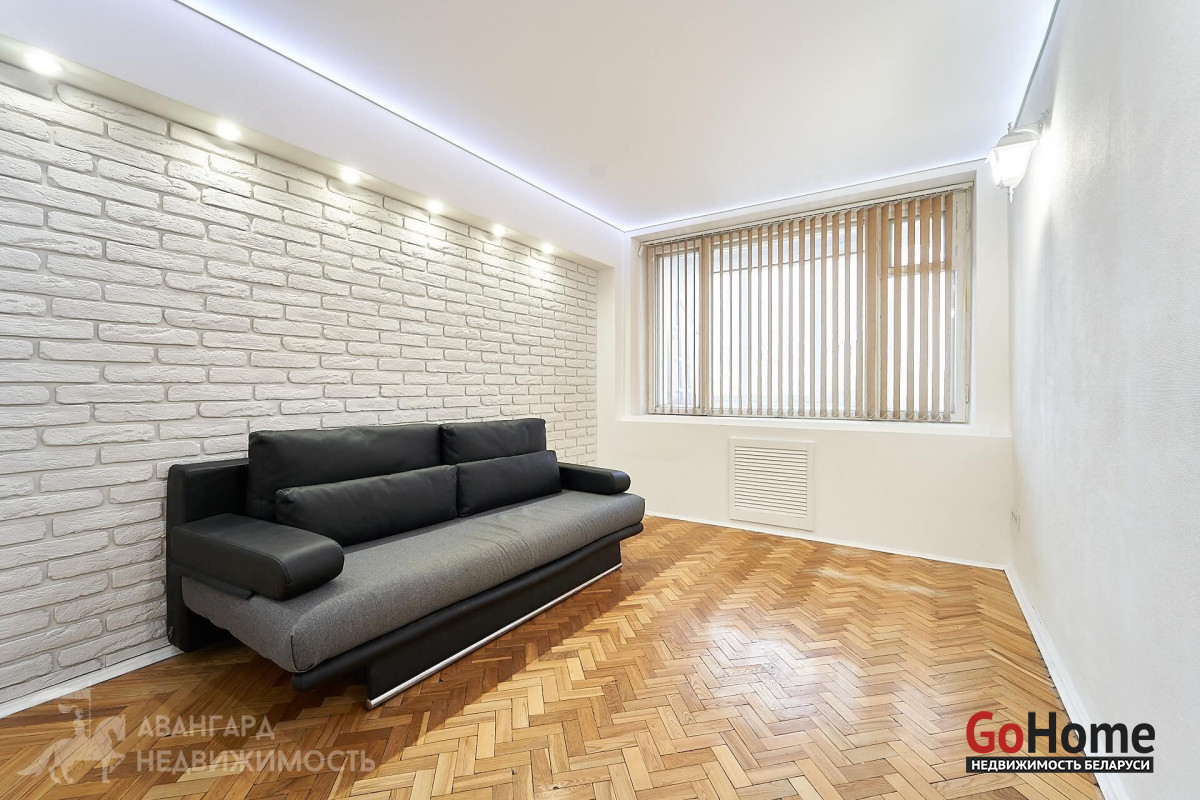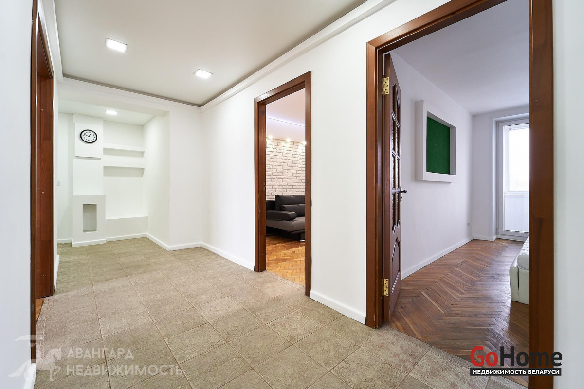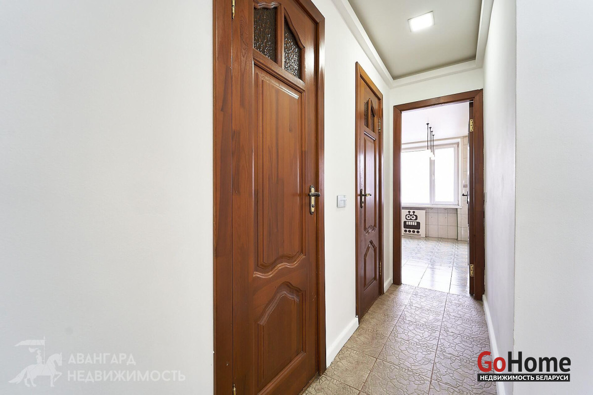 Жилые комнаты правильной формы, что позволит вам с легкостью расставить мебель. Комната площадью 18,8 м2 и кухня выходят на проспект Независимости. Две комнаты поменьше (спальня) выходят окнами во двор.