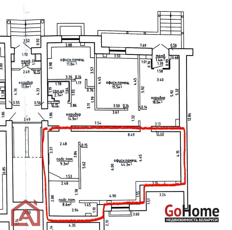 - помещение площадью – 9,3-62,2 м2,