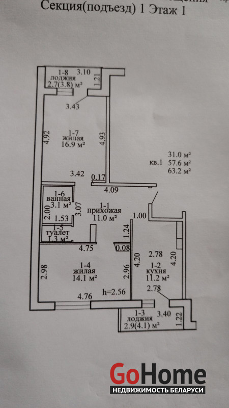 · Общая площадь: 63 кв.м.