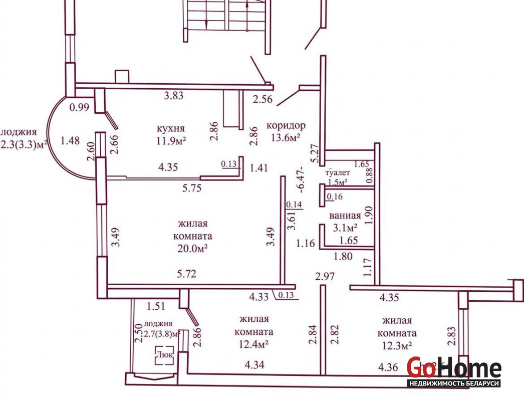 Идеальной планировкой предусмотрено: кухня 11.9 м2 совмещенная с утеплённой лоджией, спальные комнаты 12.4 м2, 12.3 м2, раздельный сан. узел, установлен дополнительный бойлер.