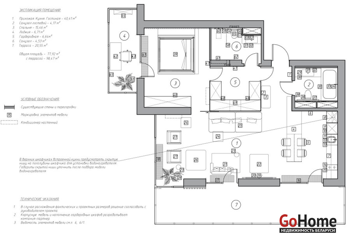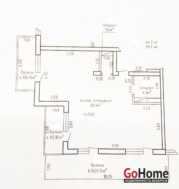 79.7 м2 - метраж всей квартиры. Высота потолков - 3.02. Ремонт выполнен по проекту дизайнера материалами премиум класса. Скрытые двери невидимки.