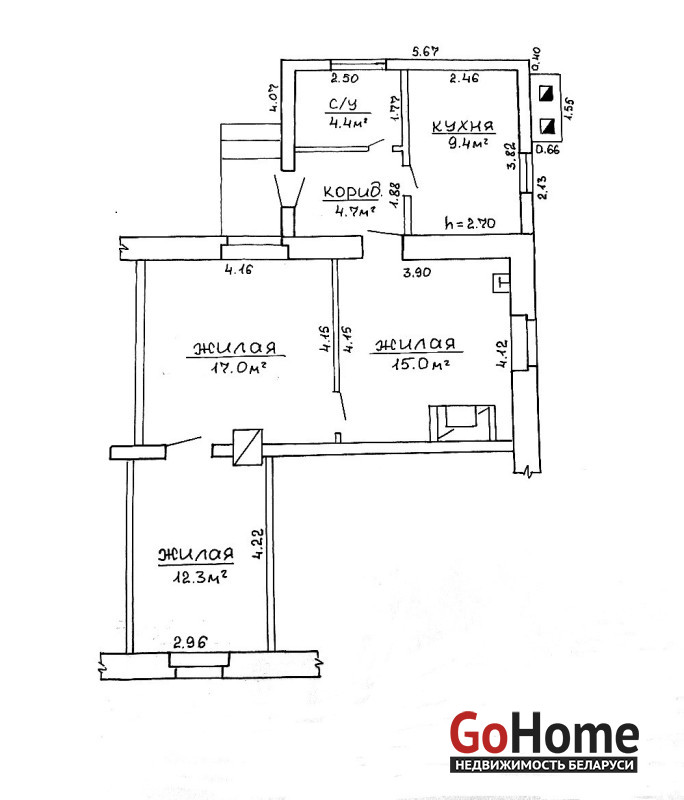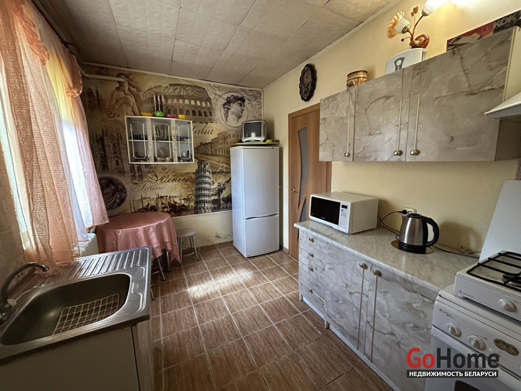 Общая площадь квартиры 62,8 кв. м, жилая-44,3 кв.м. В доме 3 комнаты (15.0 кв.м; 17.0 кв.м; 12.3 кв.м); кухня-9.4 кв.м. Центральное газовое отопление. Высота помещений-2,94м. Просторный совмещённый санузел -4,4 кв.м.(с душевой). Коридор со встроенным шкафом-4,7 кв.м. Прочный фундамент даёт возможность постройки 2го этажа. Дом оштукатурен. Крыша-шифер. Забор из сетки-рабицы и дерева. К дому прилегает земельный участок. Непосредственно за квартирой закреплён участок размером 0,0351га. Имеется гараж (металлический) и хозпостройка. Есть место для небольшого огорода или зоны барбекю. Произрастают вишни, виноград, смородина. К продаваемой квартире возможно подъехать на личном транспорте.