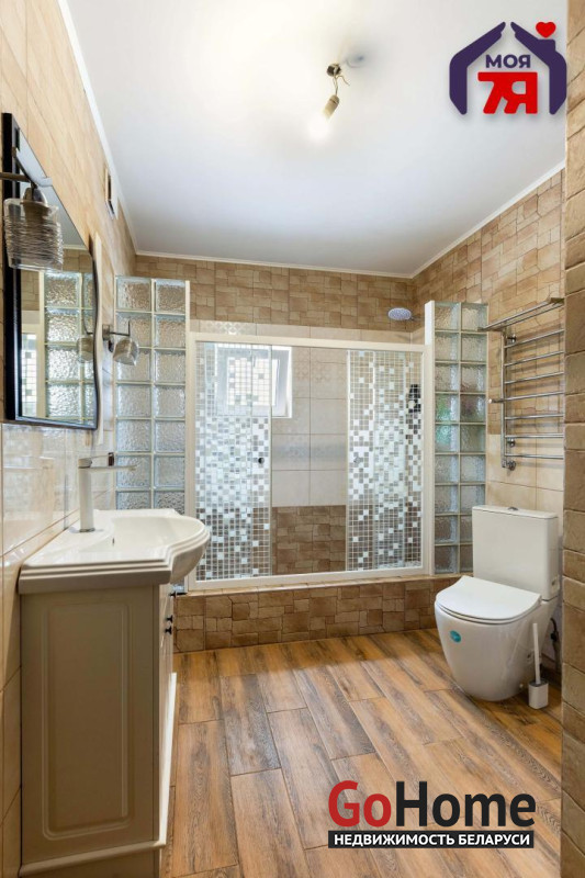 - В доме имеется два санузла с качественной отделкой: один совмещенный, один раздельный. Также имеются теплые водяные полы, установлен бойлер.