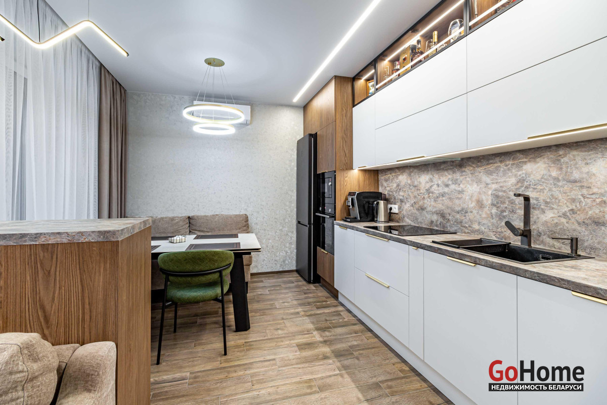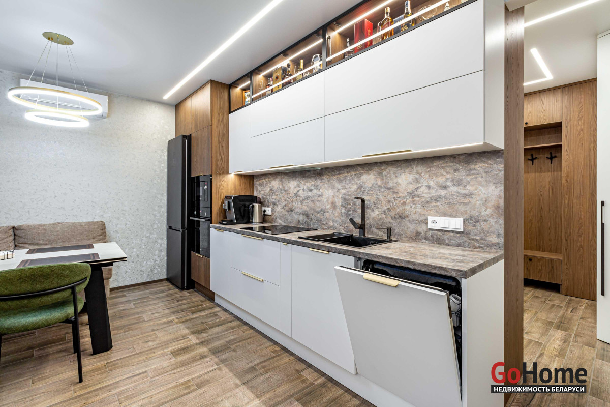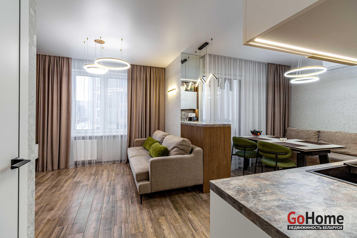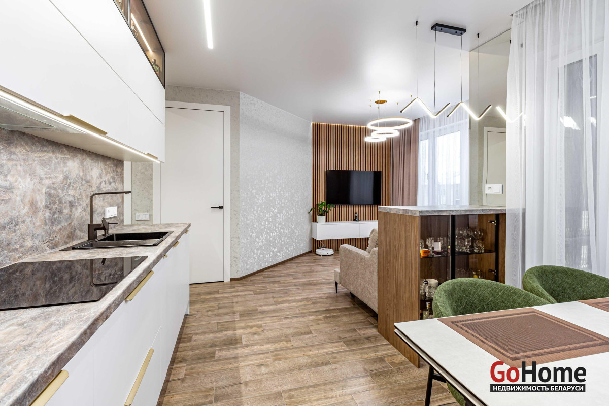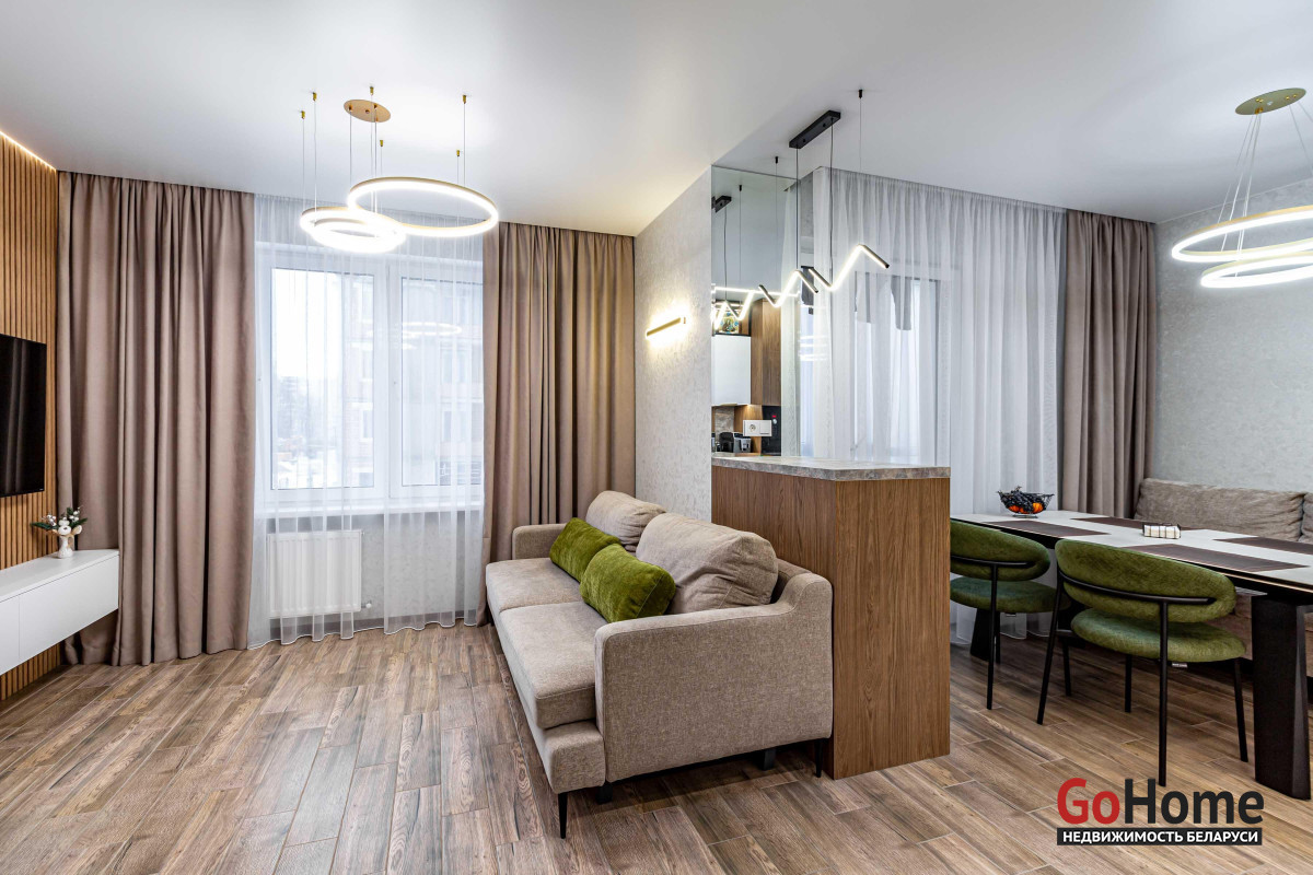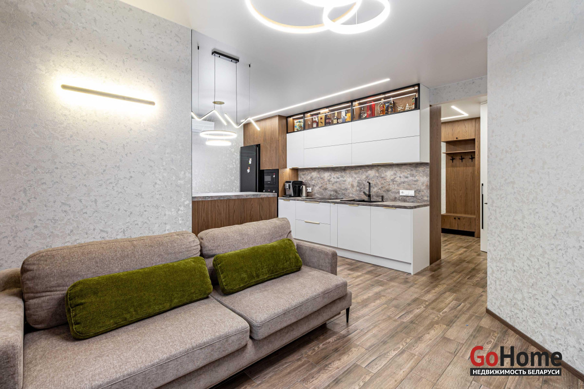 Площадь: 61,3 м2 — функциональная 3-комнатная планировка без лишних метров.Этаж: высокий 2-й из 21 — удобно и быстро, при этом без «первого этажа».Дом: Квартира в ЖК "Гранд Авеню" — это жизнь в одном из самых узнаваемых комплексов столицы. Дом 2024 года постройки славится своей концепцией "город в городе": здесь объединены передовая инженерия, престижный подземный паркинг и собственная инфраструктура со стильными лобби и новым детским садом прямо во дворе. Архитектура бизнес-класса и новые коммуникации гарантируют исключительный уровень комфорта в динамичном районе Минска.Санузел: раздельный — практично для семьи и гостей.Напольные покрытия: плитка в практичных зонах и паркет в жилых комнатах.Мебель: качественные фасады из крашеного МДФ — современный вид и износостойкость.Квартира полностью укомплектована: не требует дополнительных вложений после покупки.