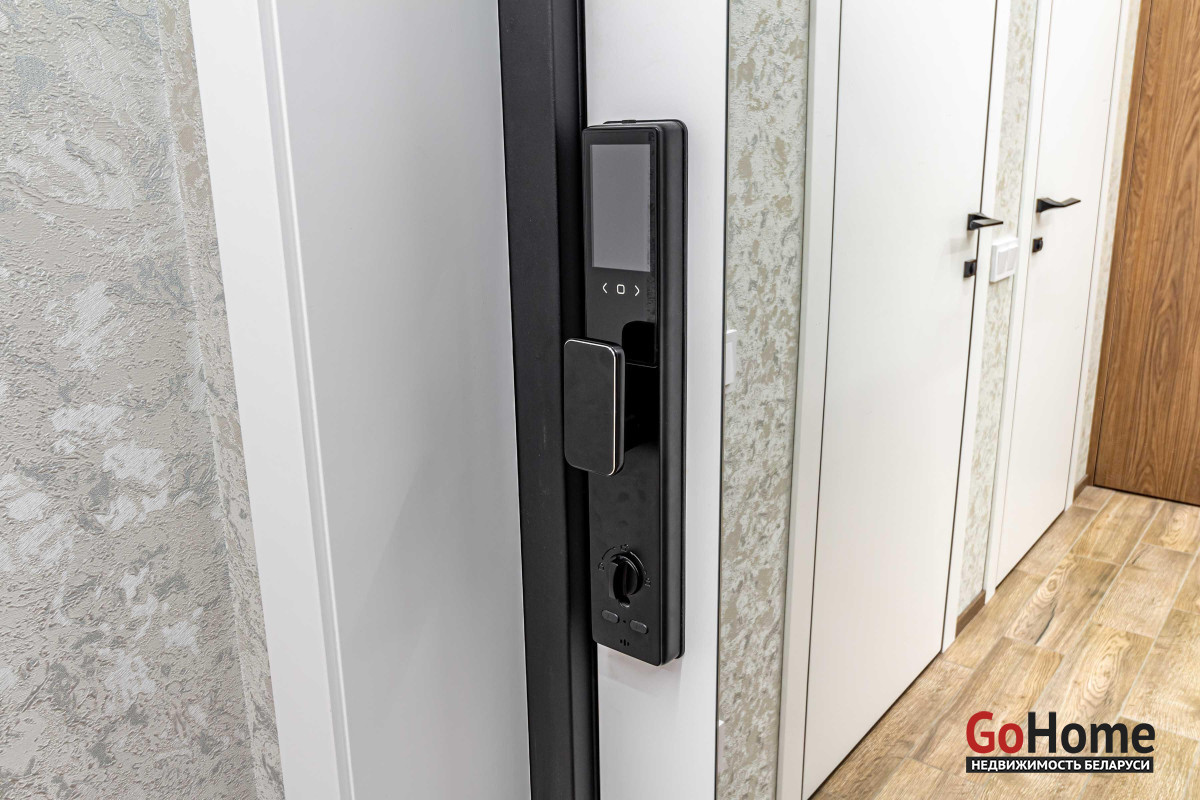 Безопасность и «умный вход»Входная дверь с умным замком и камерой.открытие по отпечатку пальца, Face ID, коду и удалённо через приложениеудалённый контроль: в приложении видно, кто заходит/выходит и как закрывает дверь.