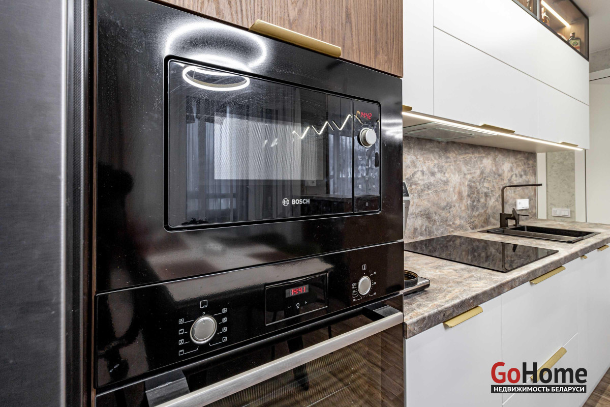 Встроенная и крупная техника:Bosch — духовой шкаф и микроволновая печьElectrolux — посудомоечная машинаLG — индукционная варочная панель и другая техника2 телевизора.Кофемашина DeLonghi.Робот-пылесос Xiaomi.Вертикальный пылесос, встроенный в шкафу — аккуратно и удобно в хранении.Стиральная машина с сушкой 2-в-1 (LG).