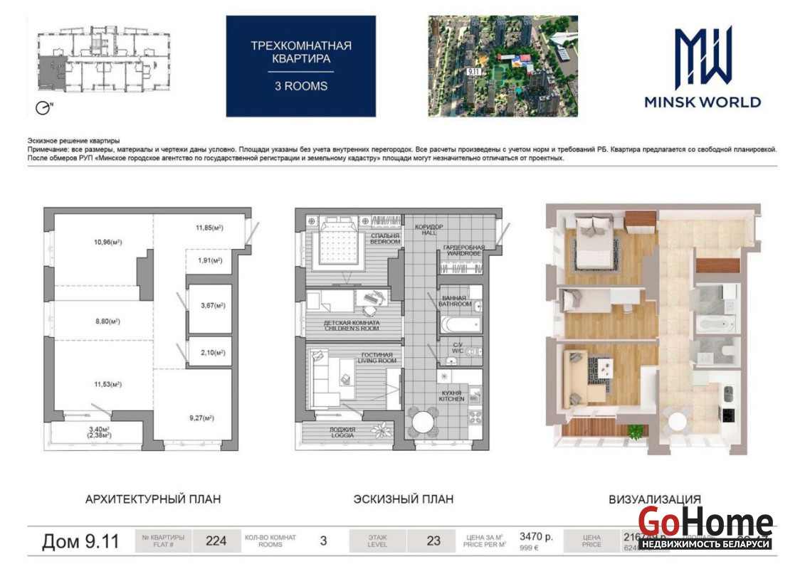 Продается 3-комнатная квартира в ЖК «Минск Мир» в одной из лучших локаций комплекса.