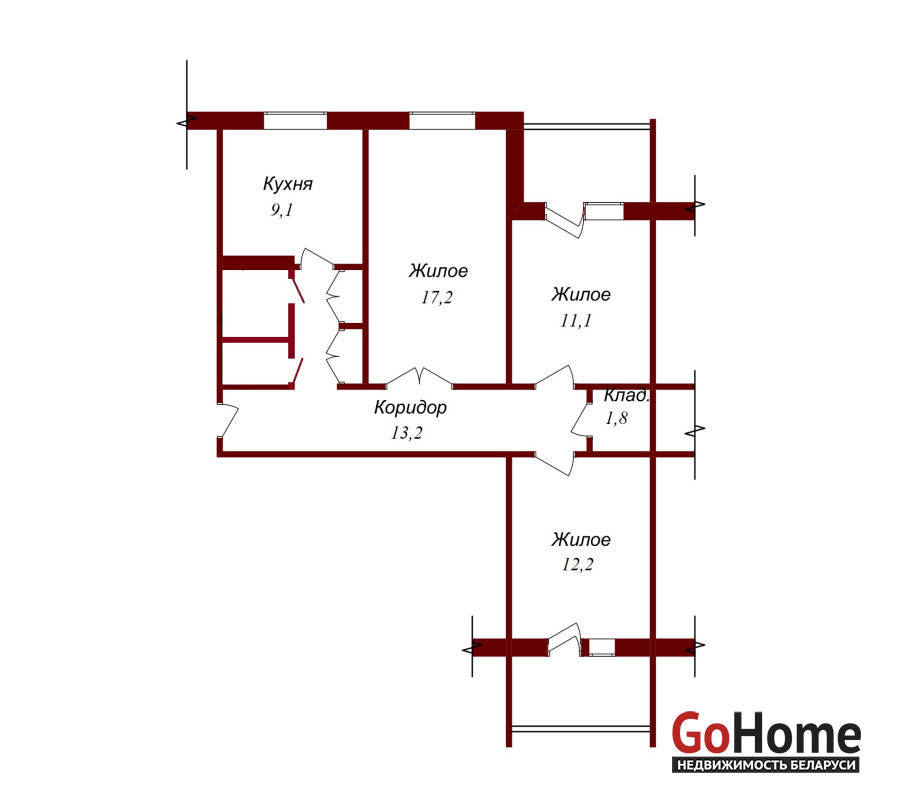 Отличный вариант для вывода под коммерческую недвижимость (квартира на две стороны).