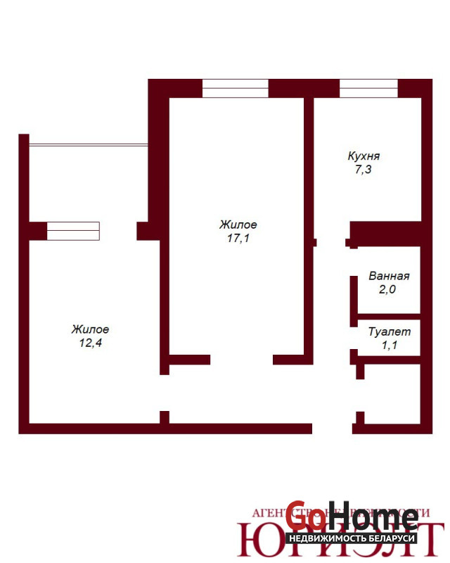Расположена на 5-м этаже 5-этажного панельного дома 1987 года постройки. Общая площадь квартиры с лоджией - 52,5 м2, из которых две изолированные комнаты по 17,1 и 12,4 м2, одна из которых с выходом на большую лоджию, кухня - 7,3 м2, раздельный санузел, просторный коридор и кладовая.