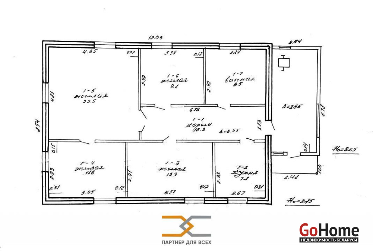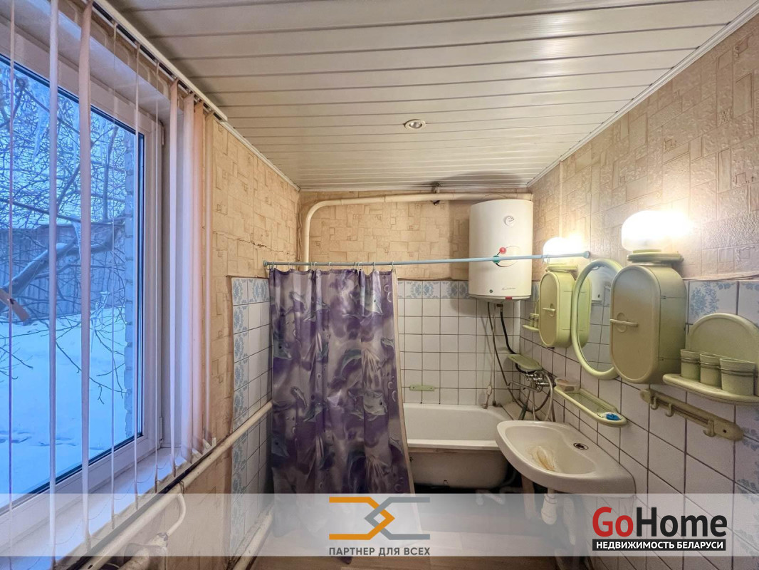В доме общей площадью 76,8 м.кв. четыре комнаты, раздельный санузел. Водоснабжение центральное, отопление также центральное. В топочной сохранён дополнительно твердотопливный котёл. В ванной установлен бойлер для обогрева воды, подключена стиральная машина. Канализация местная. В доме можно обустроить второй этаж. Фундамент высокий без трещин.