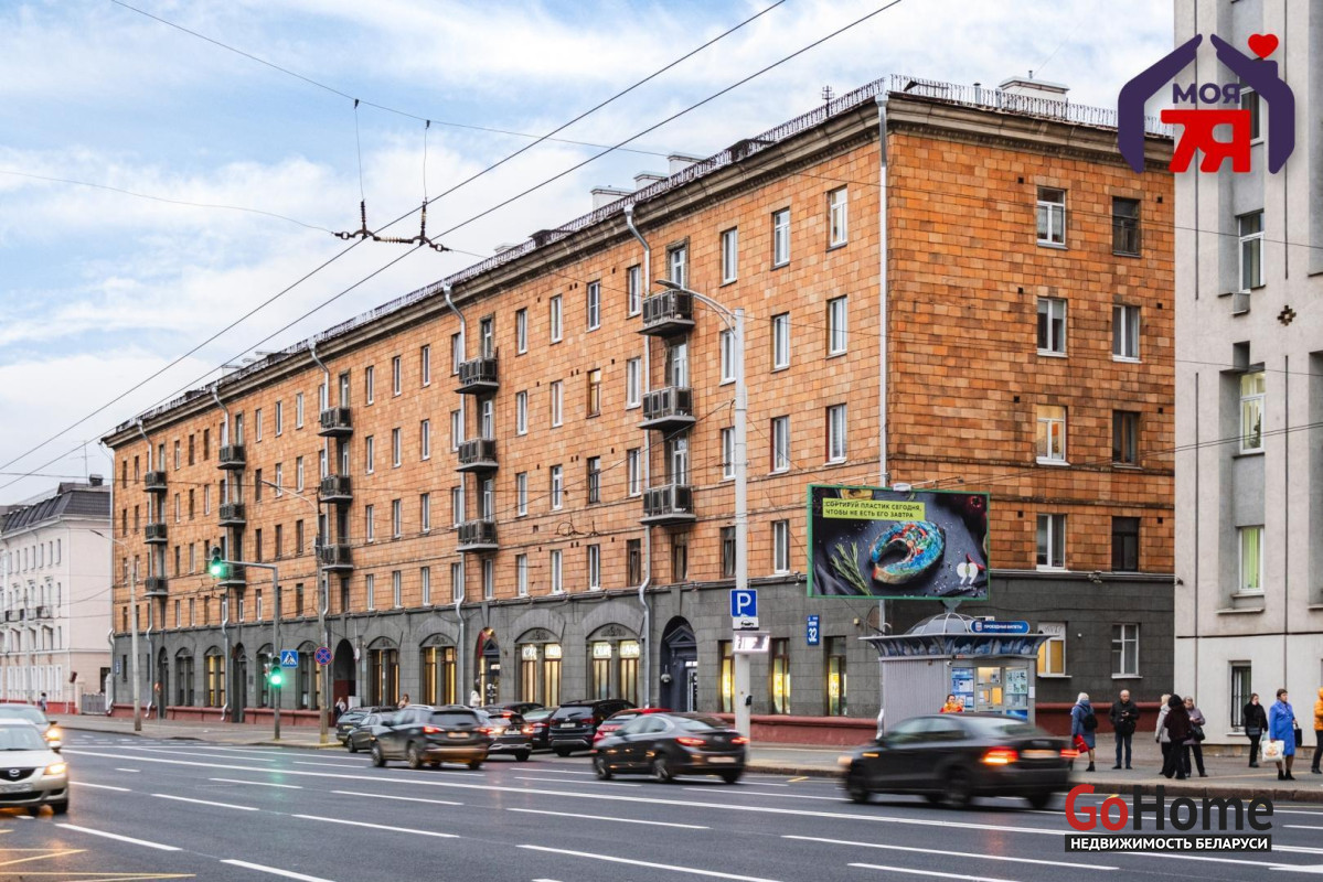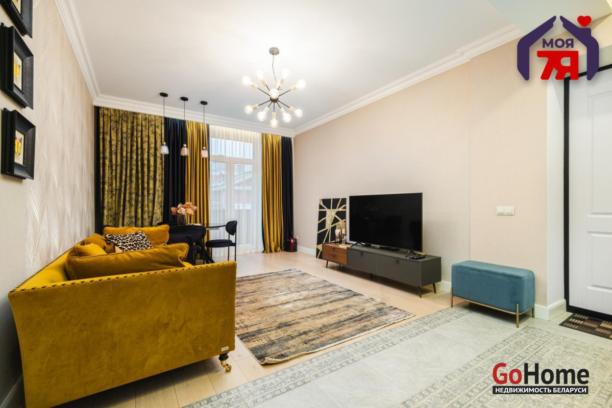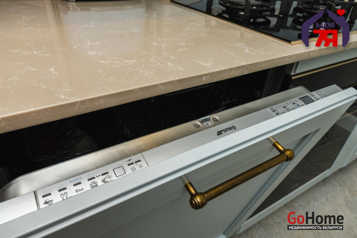 - Просторная квартира площадью 75,7 кв.м расположена на четвёртом этаже кирпичного дома сталинской эпохи с железобетонными перекрытиями. Планировка продумана до мелочей: жилая площадь составляет 45 кв.м, кухня 8,2 кв.м, из гостиной есть выход на балкон с видом во внутренний двор.- Выполнен современный евроремонт с использованием качественных материалов. Интерьер оформлен в едином стиле, где продуманы пропорции, цвет и освещение.- Кухня оборудована встроенным гарнитуром с крашеными фасадами и рабочей поверхностью из натурального камня. Вся техника фирмы SMEG входит в стоимость и включает духовой шкаф, вытяжку, посудомоечную машину, холодильник, варочную поверхность и стиральную машину.- В гостиной уложен паркет и установлена мебель премиум-класса. Комната выходит на открытый балкон, откуда открывается вид во двор. Спальня и детская оформлены аналогично: паркетная доска, качественные обои, окрашенные потолки. Вся обстановка остаётся покупателю.- Ванная и туалет раздельные. В отделке использована плитка, установлена сантехника высокого класса. Прачечная оборудована бойлером и дополнительной стиральной машиной, предусмотрены места для хранения бытовых принадлежностей.- В коридоре расположен встроенный шкаф с крашеными фасадами, на полу плитка. Работает охранная сигнализация. Входная дверь имеет повышенный уровень шумоизоляции.- Дом находится на улице Свердлова в центральной части Минска. Здесь сосредоточены главные достопримечательности и деловые объекты города. В шаговой доступности находятся метро «Площадь Ленина», торговый центр «Галилео», железнодорожный и автобусный вокзалы, гимназия, детский сад, аптеки, кафе и магазины. Поблизости расположен стадион «Динамо» и зелёные дворы, скрытые от городского шума.- Транспортная связь района обеспечивает быстрый доступ в любую часть города. До метро и вокзала пять минут пешком. Поблизости проходят основные маршруты общественного транспорта, предусмотрены удобные выезды на проспекты Независимости и Дзержинского. Локация сочетает ритм центра и развитую городскую инфраструктуру.