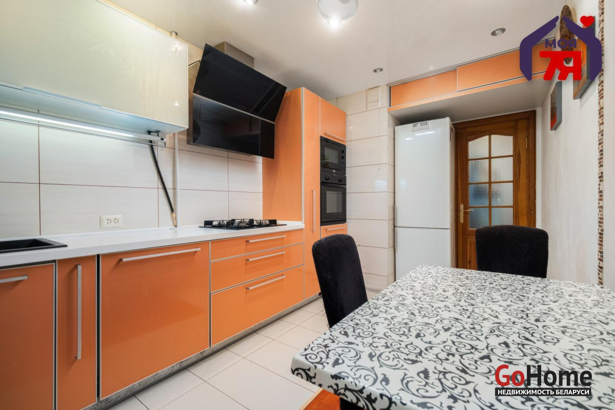 -Просторная кухня почти 10 кв.м. Здесь установлен современный глянцевый гарнитур, встроенная техника, продуманное освещение и акцентная вытяжка - это то место, где хочется встречать утро с кофе или собираться с друзьями по вечерам. Выход на застеклённую лоджию визуально добавляет объёма и расширяет варианты использования - завтраки на «летней» террасе, хранение, мини-кабинет.