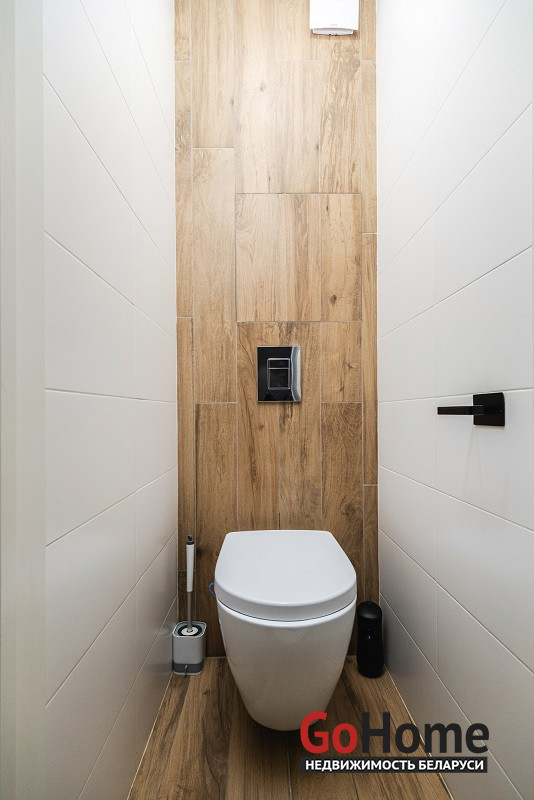 Санузел: современная цветовая гамма, качественная плитка, сантехника импортного производства с термостатическим смесителем, который гарантирует постоянную температуру выходящей воды.