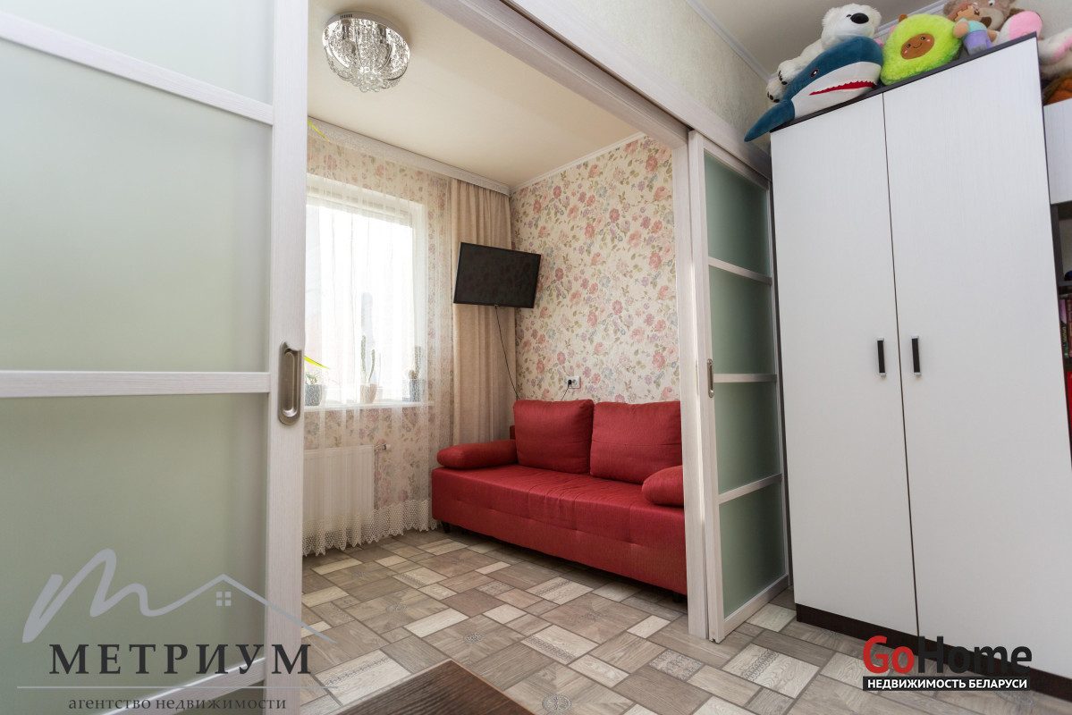 • В комнате выделена детская зона — фактически двухкомнатная