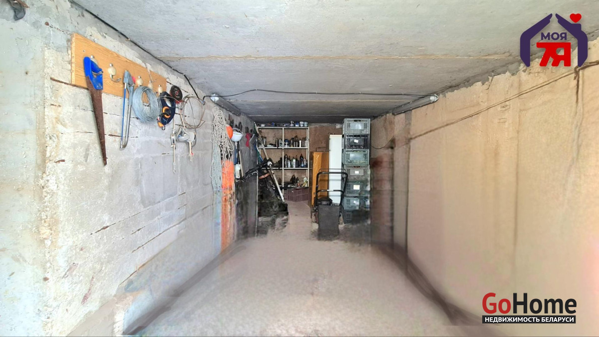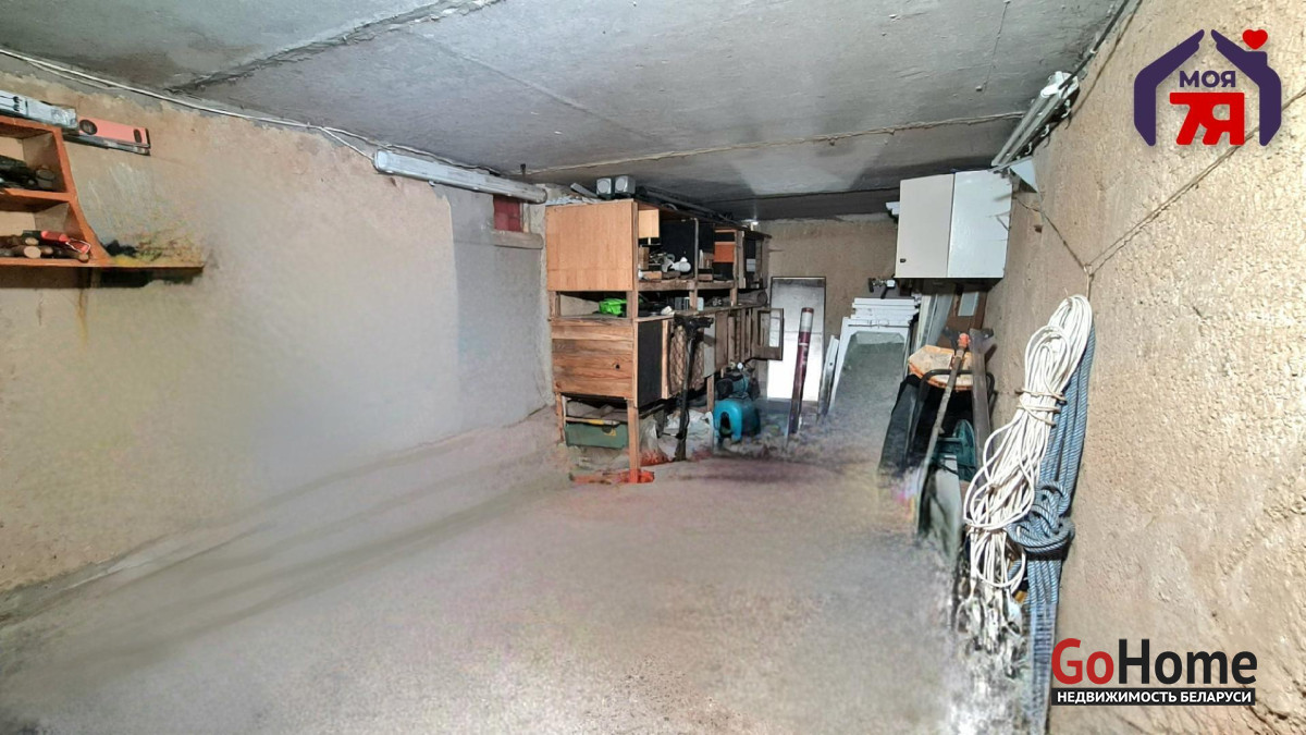-цокольный этаж: два больших помещения. Одно используется как гараж, второе — как мастерская. Удобно хранить инструмент, инвентарь и садовую технику. Также есть дополнительный подвал для хранения закаток.