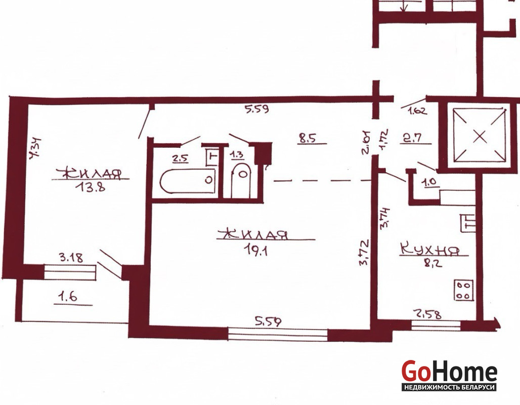 8 этаж 9-тиэтажного дома 1983 года постройки, материал стен – панель. Функциональная планировка, общая площадь 58.1 кв.м., жилая 32.9 кв.м., кухня 8.2кв.м. Окна – ПВХ. Сан. узел раздельный, облицован плиткой. Материал полов – ламинат, плитка.
