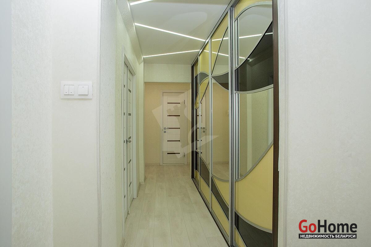 Все комнаты изолированные: 17.9, 17.8 и 9 кв.м, окна выходят на две стороны. Просторная кухня (11.3 кв.м.) со встроенной мебелью и техникой: духовой шкаф, варочная панель и вытяжка, установлены окна ПВХ. Раздельный санузел. Лоджия застеклена и создает дополнительное полезное пространство, где тепло и тихо. Входная металлическая дверь, межкомнатные двери МДФ. В прихожей большой встроенный шкаф.