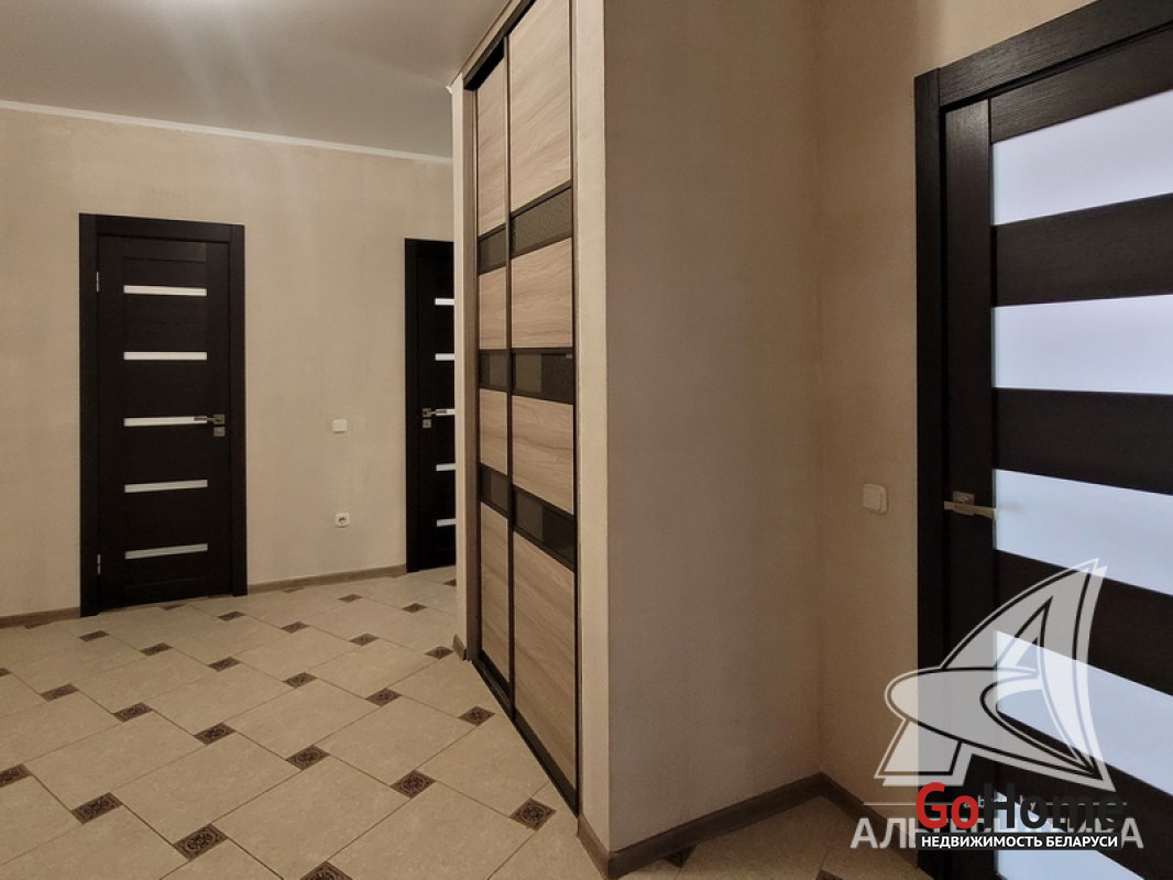 2-комнатная квартира, г. Брест, б-р Космонавтов, 2013 г.п., 2 / 6*7 кирпич + блок, 71,9 / 69,7 / 41,0 / 9,1, санузел совмещенный, лоджия застеклена, стеклопакеты, межкомнатные двери - МДФ, многоуровневые потолки (2,70 м) - снежка, полы - ламинат и плитка, на стенах декоративная окраска и обои, кондиционер, домофон. Кухонный гарнитур, газовая плита, две кровати, диван (в зале), шкаф-купе (в прихожей). Квартира с хорошим ремонтом. Во дворе игровая детская площадка, парковка для автомобилей. Лот - 260210