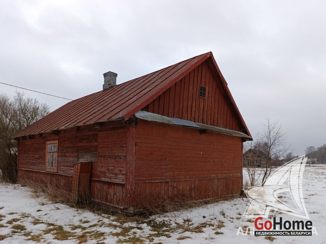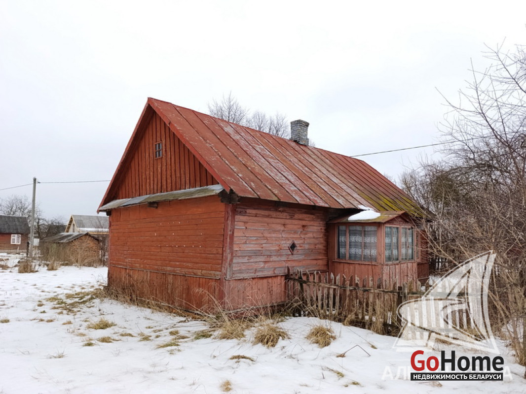 Дом под снос в Кобринском р-не. 1930 г.п. 1 этаж. Общ.СНБ - 37,3 кв.м, общ.- 37,3 кв.м, жил.- 19,5 кв.м, кух.- 5,0 кв.м. 2 комнаты, высота потолка - 2,20 м.