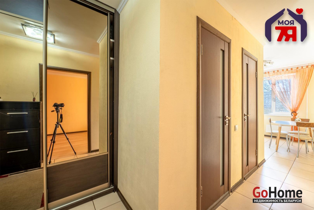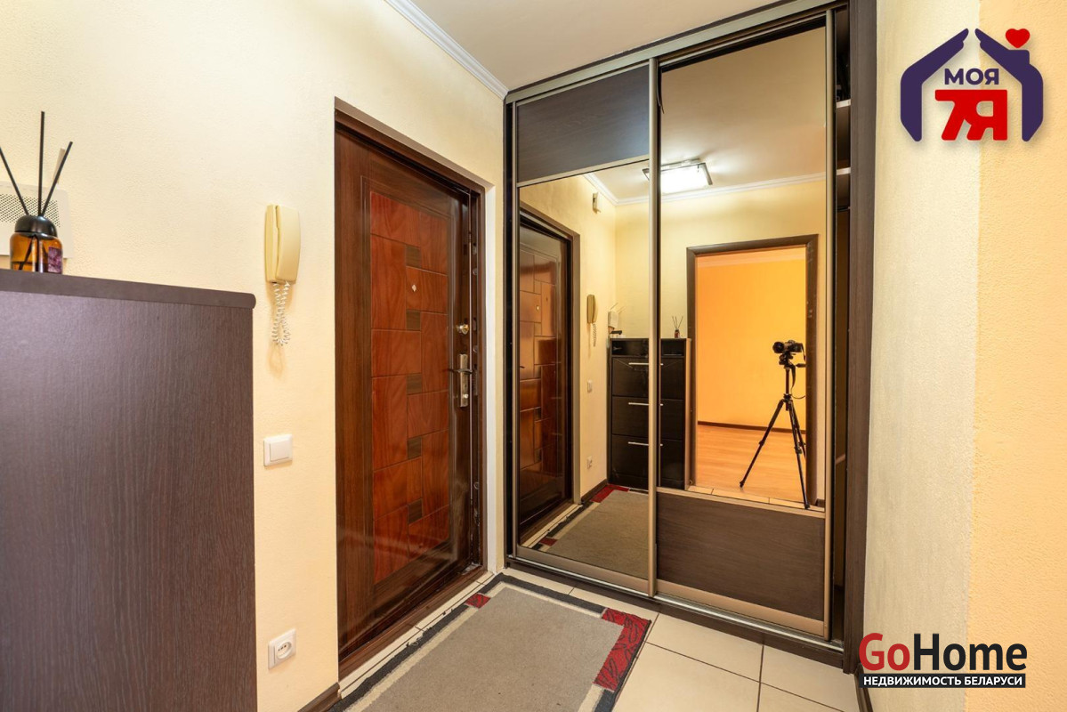 -В прихожей установлен вместительным шкафом-купе с зеркальными дверями, что позволяет эффективно организовать пространство и делает его более просторным.