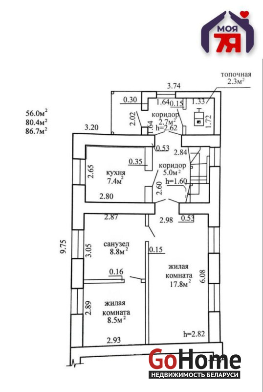 -Общая площадь жилья составляет 86,7 м2, из которых 56 м2 - жилая.