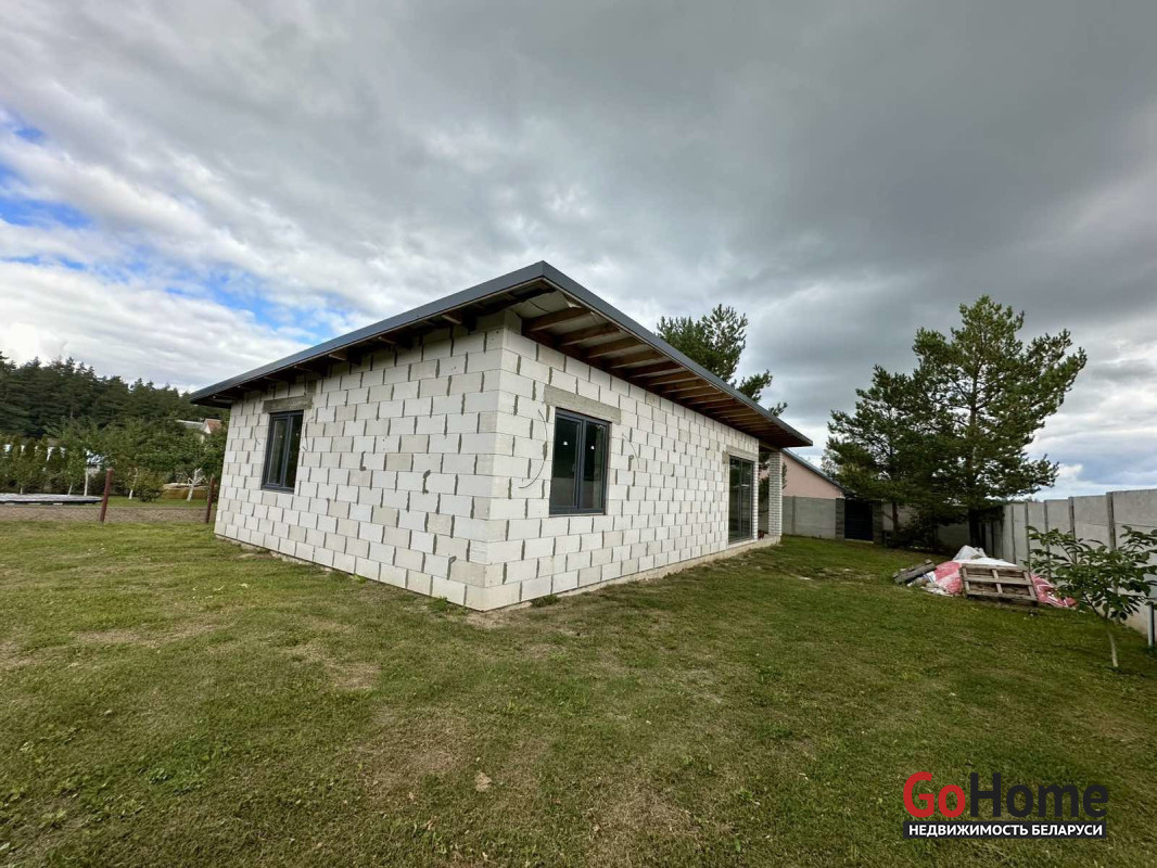 Дом блочный, фундамент ленточный, крыша металлочерепица, окна ПВХ, электричество 380Вт, проводка разведена по дому, канализация местная.