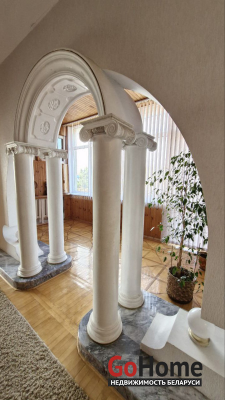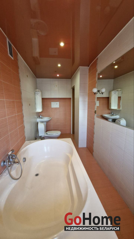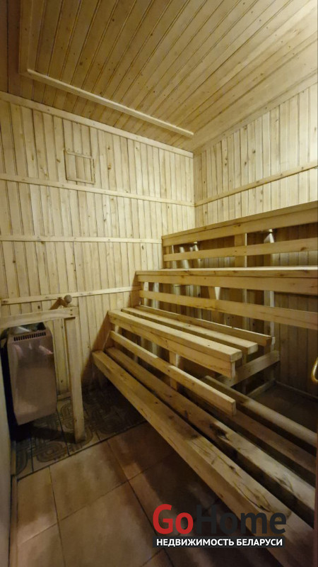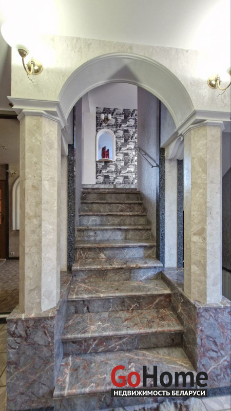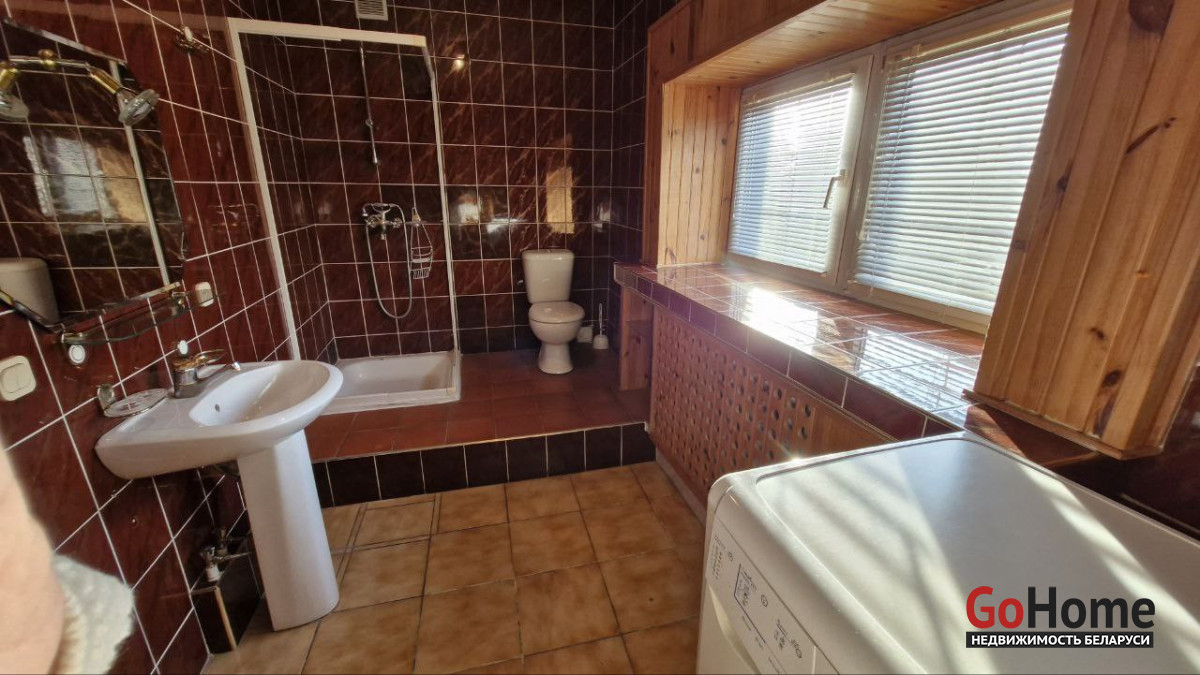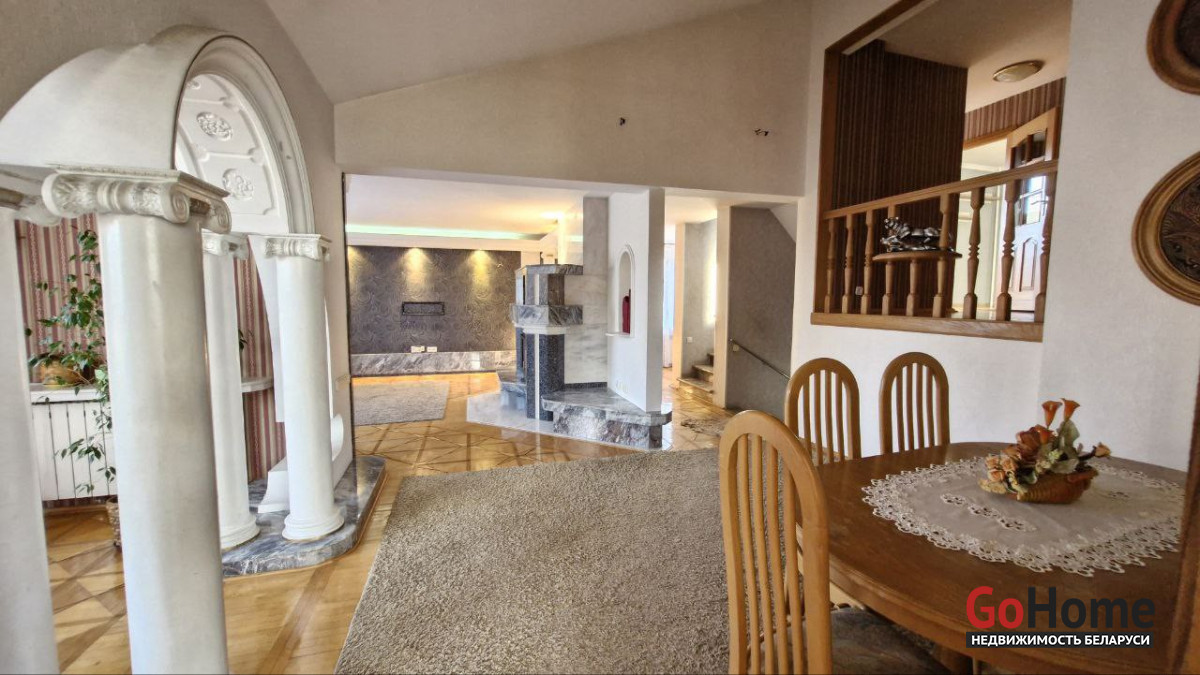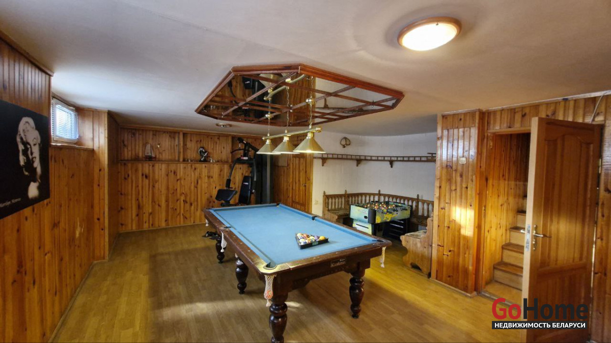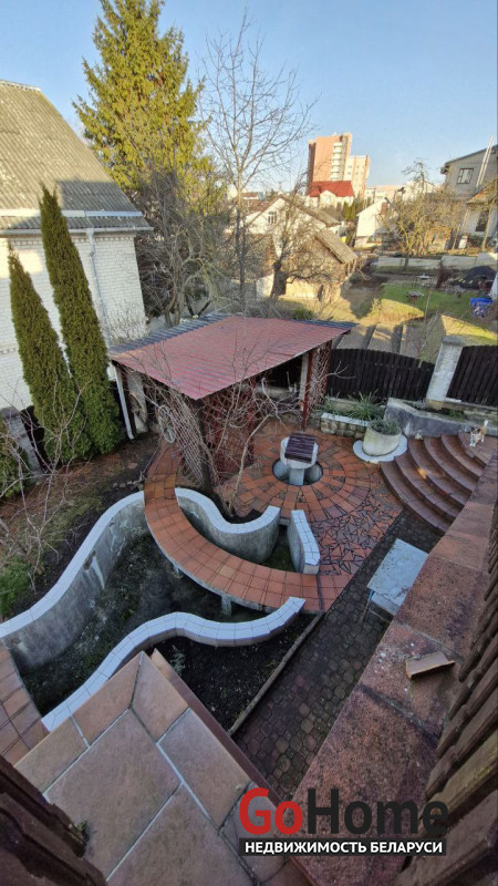 В доме имеется баня, бильярдная, гараж в подвальном помещении, три санузла, два камина, природный газ, центральная канализация, водопровод. Крыша - металлочерепица, пластиковые стеклопакеты. Участок 6,94 соток облагорожен и огорожен забором, практически прямоугольный. Земля в пожизненно наследуемом владении. Высажены туи, сосны, плодовые деревья. Двор выложен тротуарной плиткой. На участке организована зона барбекю, установлен фонтан, бассейн и беседка.