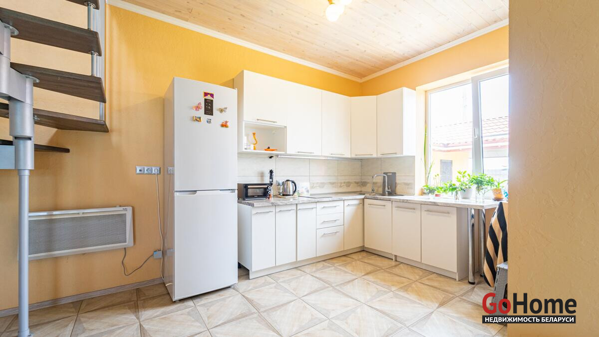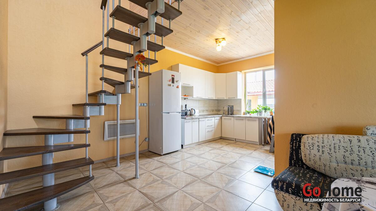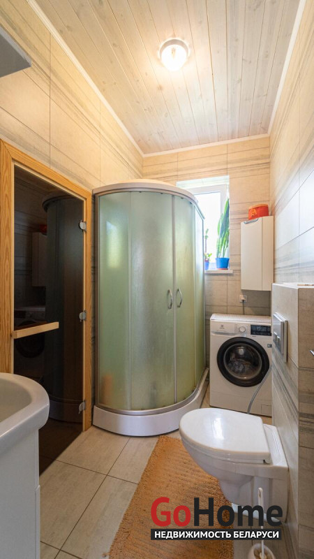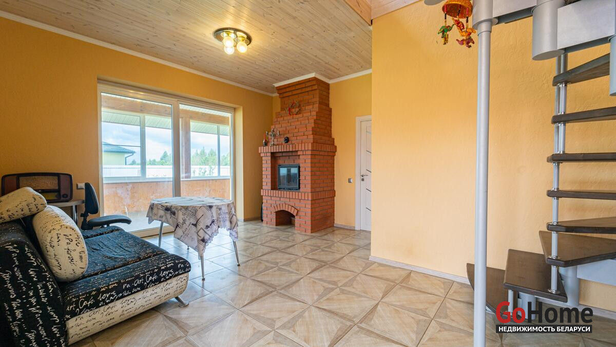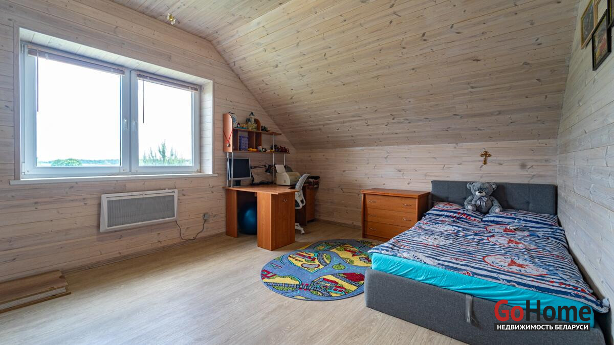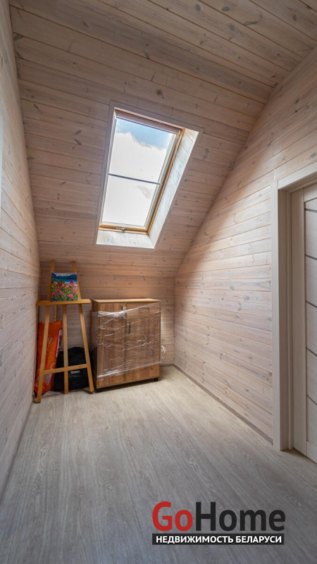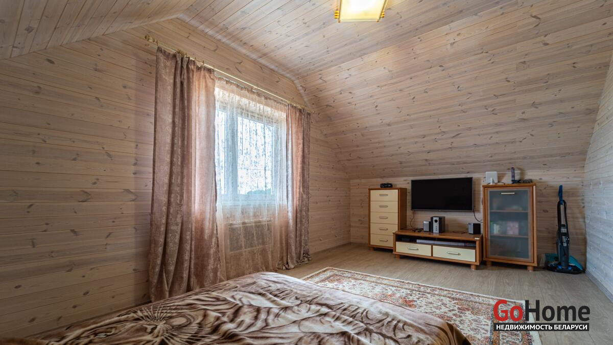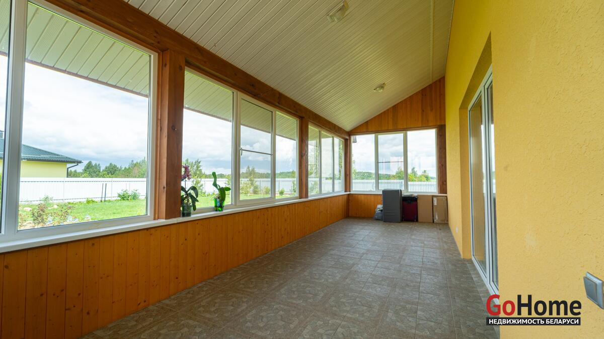 На первом уровне расположены: огромная веранда, кухня-гостиная, жилая комната, санузел с сауной. Удобная лестница на второй уровень, где расположены две жилые комнаты. Окна в доме расположены на обе стороны.