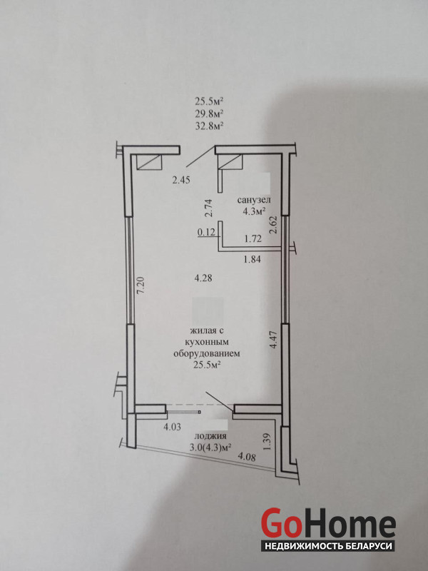 Площадь квартиры указана по СНБ. Общая площадь 29,8 м.кв.