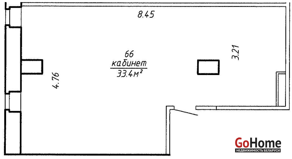 Площадь: 33,4 м2. Планировка: open-space. Этаж 2.