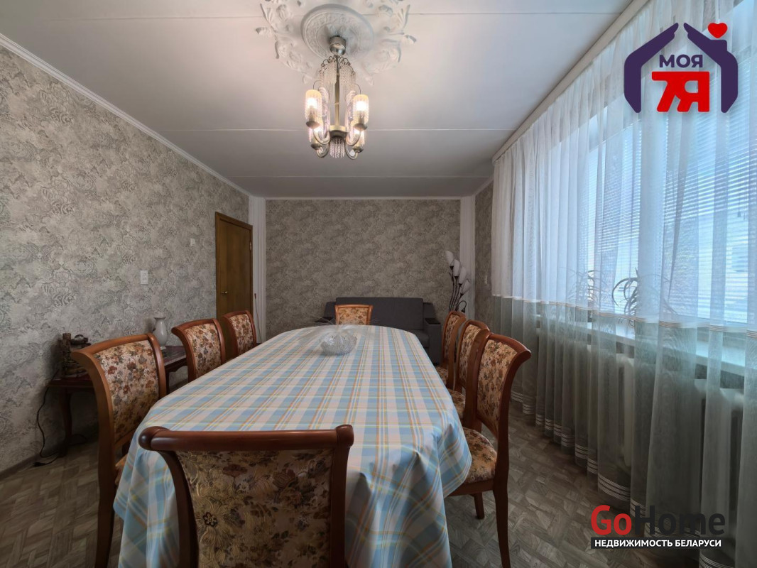 - Планировка включает в себя 5 просторных жилых комнат, одна из которых оборудована в гостеприимную столовую с выходом на застекленную лоджию. Также вас порадует просторная кухня с выходом на дворовую территорию и два санузла.
