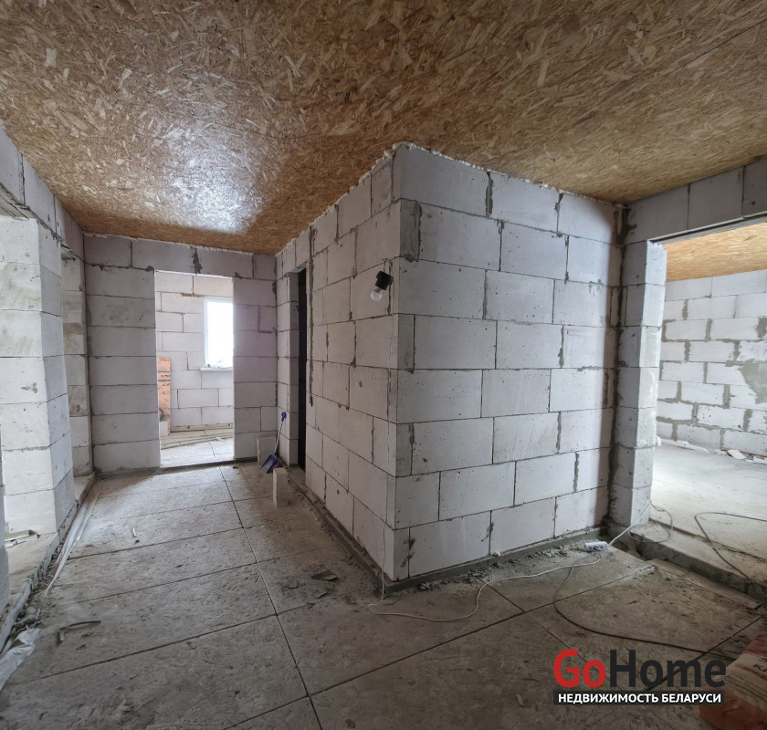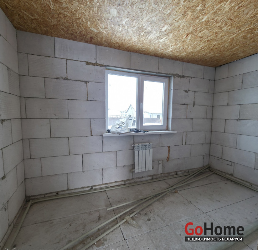 Состояние: Объект введен в эксплуатацию. Внутри выполнена черновая отделка: бетонные полы, потолки OSB, установлены окна ПВХ и качественная входная дверь.