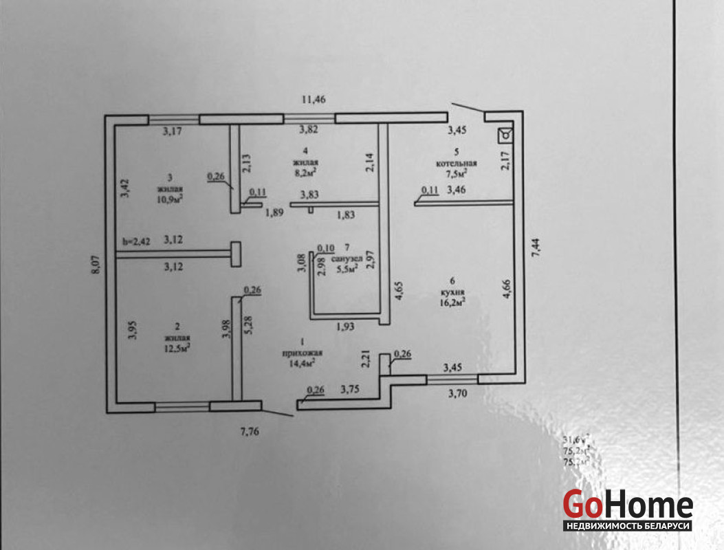 Планировка: Общая площадь 75,2 м2, 3 изолированные жилые комнаты, большая прихожая, совместный сан.узел и просторная кухня 16,2 м2 для всей семьи.