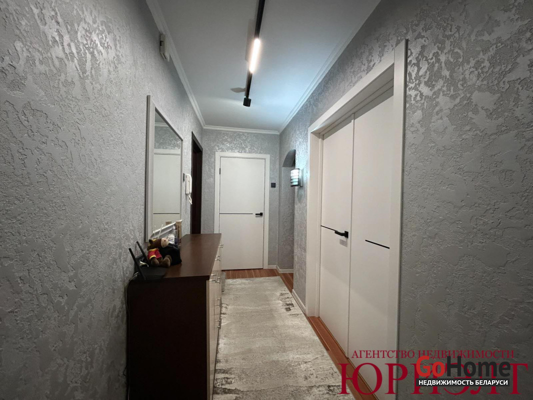 Квартира с хорошим и свежим ремонтом: заменена проводка, сантехника, установлены окна ПВХ, входная дверь металлическая, межкомнатные нового образца с магнитной фурнитурой; лоджия застеклена, утеплена, выведено освещение и розетка; потолки выровнены и окрашены снежкой; на полу ламинат; кладовка переоборудована в гардеробную комнату; санузел облицован современной керамической плиткой; стены оклеены обоями/декоративная штукатурка. Отличное состояние квартиры, в которое можно заехать и жить.