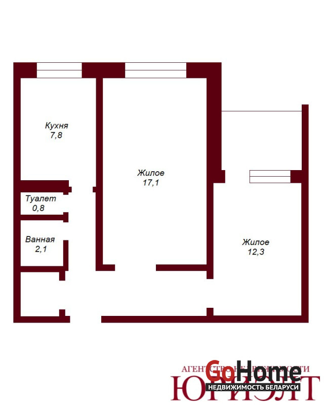 Просторная планировка, общая площадь 52 кв.м, жилая - 29.5 кв,м, кухня - 7.8 кв.м; из спальни выходит утепленная лоджия, есть гардеробная.