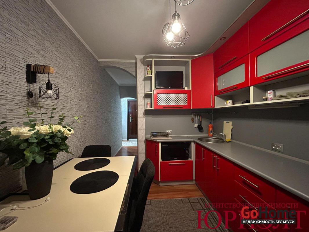 Новым владельцам останется кухонный гарнитур, встроенная техника, стиральная машина (на кухне); стенка в зале; мебель в коридоре; мебель в спальне; полки/стеллажи в гардеробной; остальное - по договоренности.
