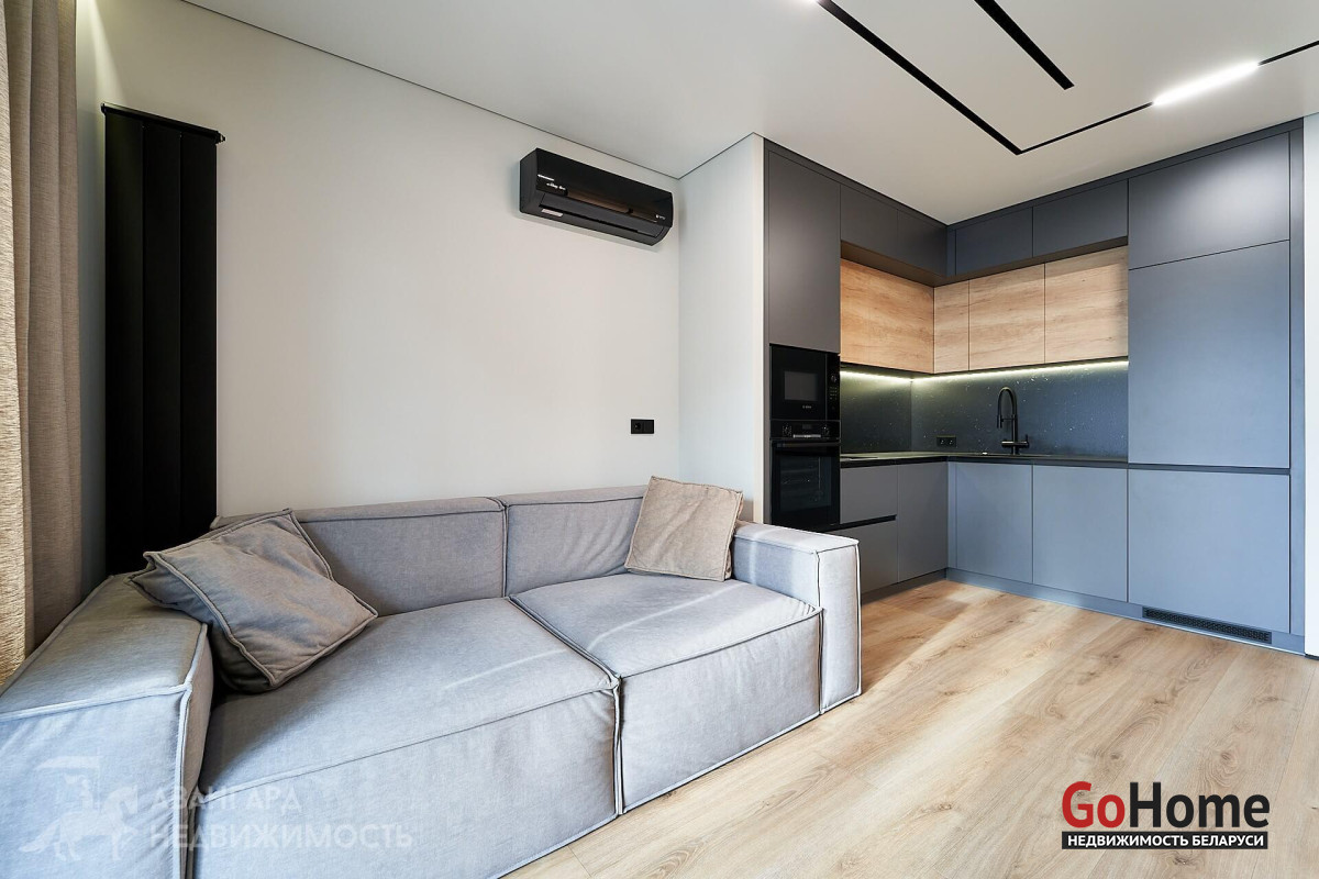 Дизайнерская квартира в в жилом комплексе Vogue!Лучшая локация в Минске рядом с метро и парком Челюскинцев! Респектабельные соседи. В квартире выполнен современный ремонт из высококачественных материалов. При ремонте использовались только импортные стройматериалы и техника. Холодильник Liebherr ICNf 5103 Pure NoFrost , Электрический духовой шкаф Bosch HBG537NB0R , Варочная панель Bosch PIB375FB1E, Встраиваемая посудомоечная машина Bosch SMV25FX03R, Измельчитель пищевых отходов InSinkErator, Стиральная машина ASKO W4086C.W/2, Сушильная машина ASKO T408HD.W, Паровой шкаф для одежды Samsung DF60R8600CG/LP, Вентиляция - приточная установка ROYAL Clima RCV-500 , питьевой фильтр - система обратного осмоса серии Atlas Oasis Sanic DP, Кондиционер Royal Clima RCI-AN35HN , Система умягчения воды. Площадь по СНБ – 46,1 м2, жилая площадь 30 м2.Дом обслуживается товариществом собственников, подъезд и придомовая территория постоянно ухожены. Благоустроенная детская игровая площадка. В подъезде консьерж, стилизованное лобби с зонами отдыха. В доме и по периметру организована система видеонаблюдения и умный видеодомофон (работает через приложение в смартфоне). Есть паркинг с возможностью аренды или покупки машино-места. Район обладает развитой инфраструктурой, всё необходимое находится в шаговой доступности: детские сады и множество развивающих кружков и развлекательных центров для детей; гимназии и школа №20 рядом с комплексом; гимназия-колледж искусств. Отличное транспортное сообщение: в 10 минутах пешком находятся станции метро "Московская" и "Парк Челюскинцев", а также остановки общественного транспорта. В окрестностях "Парк Челюскинцев" с аттракционами и "Ботанический сад", несколько супермаркетов, фитнес-клубов, спа-центров с салонами красоты, ТРЦ, рестораны и кафе — всё необходимое для комфортной жизни и отдыха. Дом расположен в экологически чистом, спокойном и зеленом районе города. Идеальное расположение в самом центре столицы, шаговая доступность станций метро позволяет с легкостью добраться в любую точку города!Чистая продажа, ключи в день сделки!